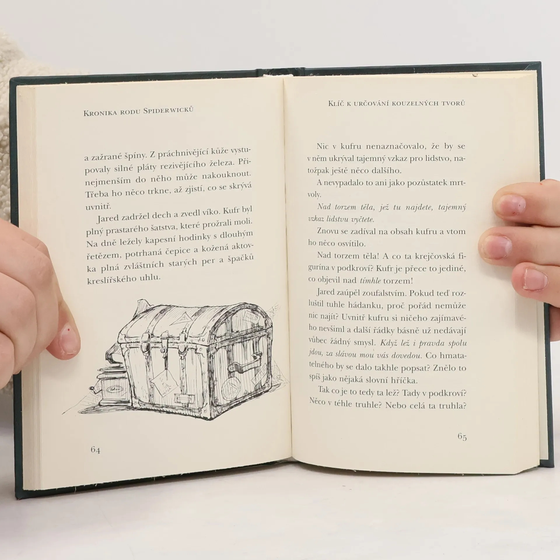 Tajemný starý dům, kam se přestěhovali sourozenci Graceovi s maminkou, vypadal jako "deset chatrčí nalepených jedna na druhé. Dům měl několik komínů a celou tu prapodivnost korunoval železný plůtek, který mu trůnil na střeše jako obzvlášť výstřední klobouk." V domě se začnou dít podivné věci. Dvojčata Jared a Simon a jejich starší sestra Mallory tuší, že tu nejsou sami. Potom Jared v podkrovní místnosti bez dveří, kam lze vstoupit jen pomocí výtahu na jídlo, objeví zatuchlý kufr s falešným dnem a v něm knihu se zažloutlými listy a s tajemným názvem: Klíč Arthura Spiderwicka k určování kouzelných tvorů kolem nás. Ano, jejich tušení se potvrdilo! Ve starém domě a jeho okolí se to hemží nejrůznějšími skřítky, šotky a dalšími nadpřirozenými bytostmi. Série knih o dětech, které vstoupily do světa kouzelných tvorů, se setkala s nebývalým zájmem čtenářů v mnoha zemích.
