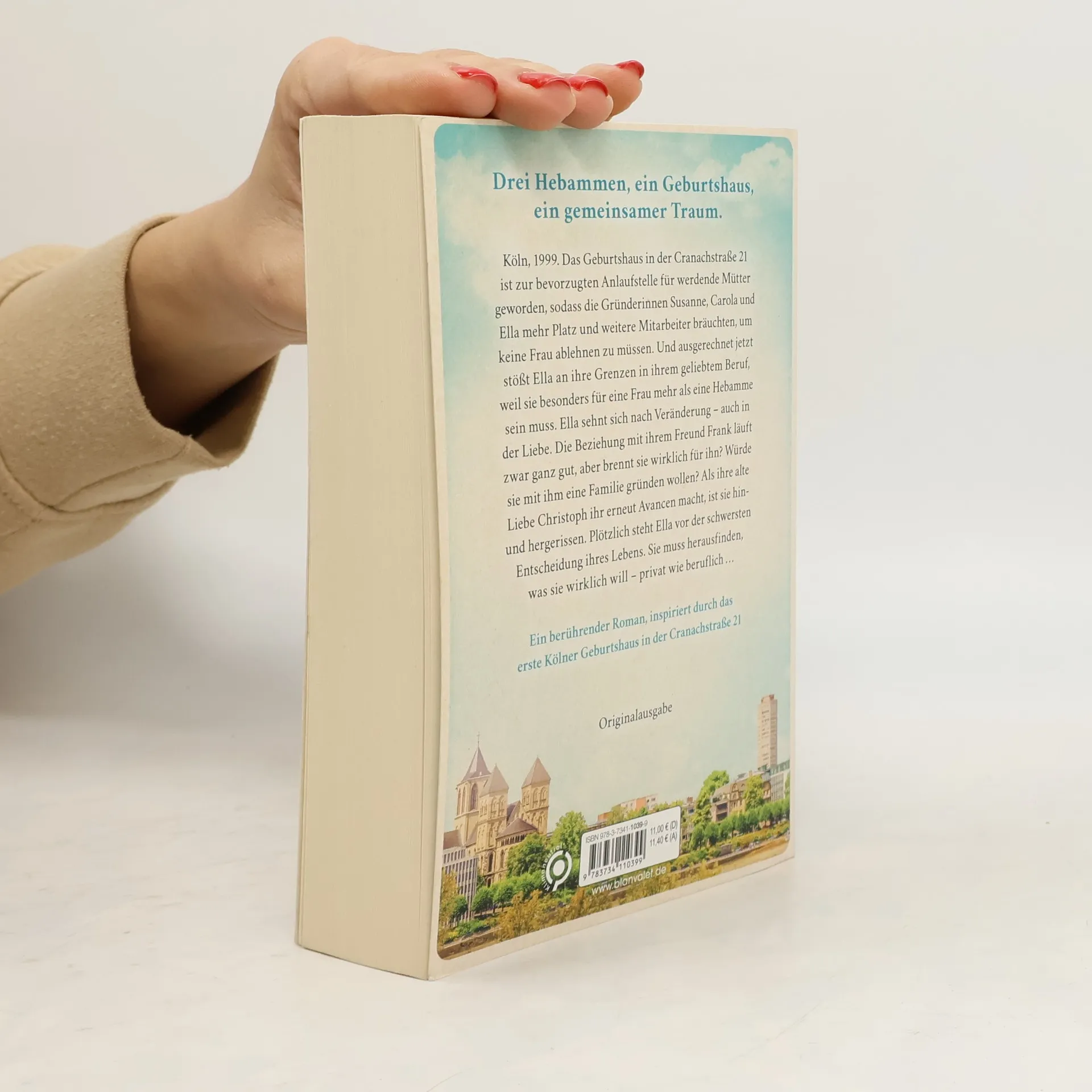 Für sie ist der Beruf eine Berufung: die Hebammen aus dem Haus der guten Hoffnung! Köln. Das Geburtshaus in der Cranachstraße 21 ist zur bevorzugten Anlaufstelle für werdende Mütter geworden. Obwohl mittlerweile neue Kolleginnen das Team ergänzen, müssen die Gründerinnen – die Hebammen Ella, Susanne und Carola –immer wieder schweren Herzens Patientinnen aus Kapazitätsgründen ablehnen. Trotz des beruflichen Erfolgs sehnt sich Ella nach Veränderung. Und als ihr Freund Frank ihr einen Heiratsantrag macht, zögert sie, ja zu sagen. Doch dann wird sie gebeten, ein Hilfsprojekt in einem Geburtshaus in Uganda zu betreuen. Plötzlich steht Ella vor der schwersten Entscheidung ihres Lebens … Ein berührender Roman über die kleinen und großen Dramen, über Schmerz, Freude und den Glauben, dass am Ende alles gut wird. Die Trilogie um das Geburtshaus in der Cranachstraße: Band 1: Das Haus der Hebammen – Susannes Sehnsucht Band 2: Das Haus der Hebammen – Carolas Chance Band 3: Das Haus der Hebammen – Ellas Entscheidung Die Bücher erzählen eigenständige Geschichten und können unabhängig voneinander gelesen werden.