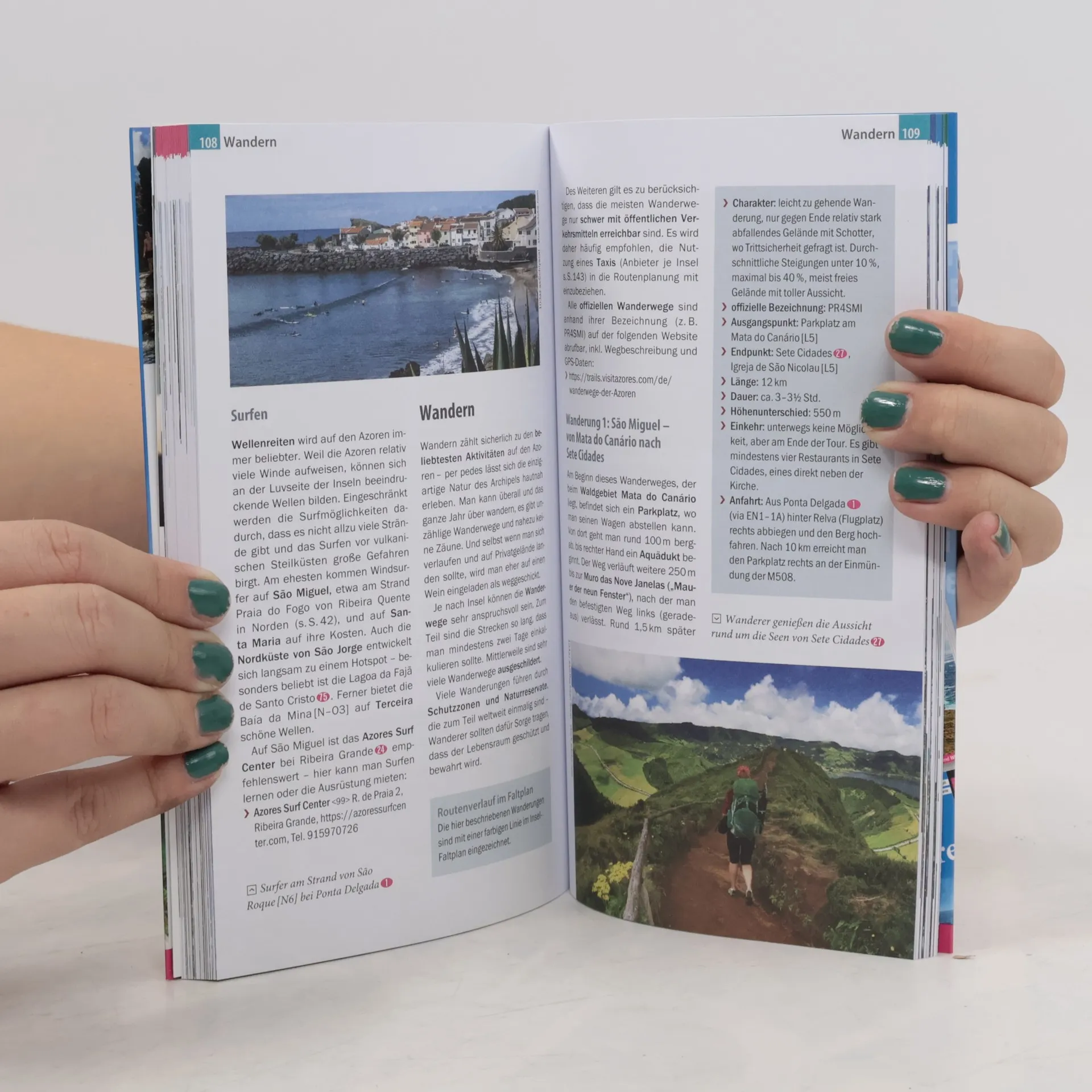 Die Azoren im Golfstrom sind ein ganzjähriges Reiseziel mit subtropischem Klima, intakter Natur und gastfreundlichen Menschen. Der Archipel bietet nachhaltigen Tourismus, Genuss und Erholung, sei es beim Erkunden malerischer Hafenstädtchen, beim Baden in Naturschwimmbecken oder beim Probieren der auf Vulkanerde gereiften Weine. Mit steilen Küsten, hohen Bergen und tiefen Kraterseen ist die Region ideal zum Wandern in einzigartiger Natur. Zudem sind die Azoren ein beliebtes Ziel für Tauchen, Segeln und Wale beobachten. Dieser Reiseführer ist der perfekte Begleiter, um die Vulkaninseln selbstständig zu entdecken. Er stellt die interessantesten Orte, Sehenswürdigkeiten und Attraktionen vor und bewertet sie. Zudem werden die schönsten Strände, Hotspots zum Schnorcheln, Wellenreiten und Surfen sowie Anbieter für Whalewatching und Bootstouren empfohlen. Der Guide bietet Tipps für die Erkundung mit Auto, Bus, Roller oder Fahrrad, fünf Wanderungen für alle Schwierigkeitsgrade und eine umfassende Übersicht über die azorische Küche. Praktische Informationen zu Anreise, Preisen, Verkehrsmitteln und Wetter sind ebenfalls enthalten, ebenso wie eine kleine Sprachhilfe für den Reisealltag und ein Inselfaltplan. Eine kostenlose Web-App ergänzt den Reiseführer mit Stadtplänen und Routenführungen.
