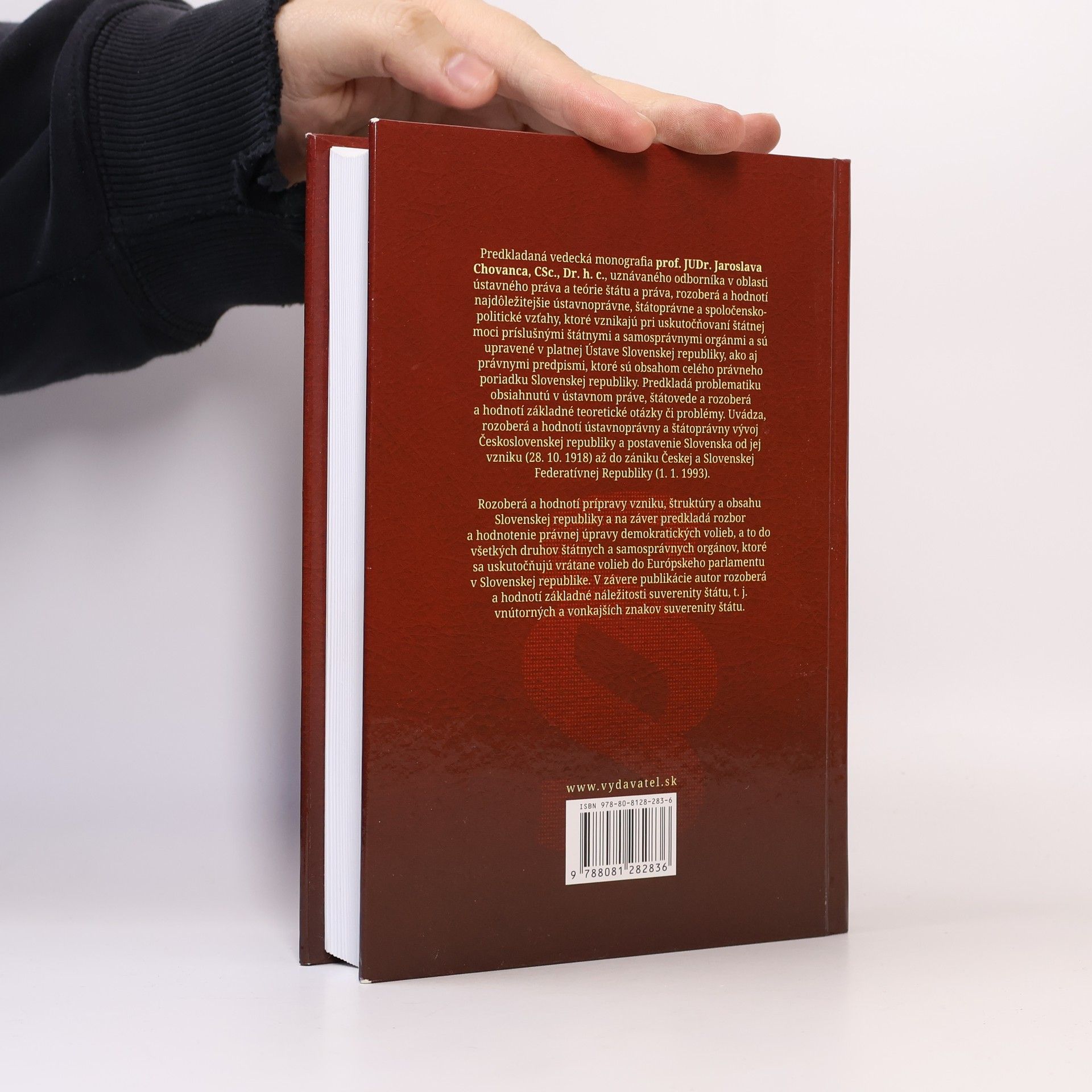 Predkladaná vedecká monografia uznávaného odborníka v oblasti ústavného práva a teórie štátu a práva, rozoberá a hodnotí najdôležitejšie ústavnoprávne, štátoprávne a spoločensko-politické vzťahy, ktoré vznikajú pri uskutočňovaní štátnej moci príslušnými štátnymi a samosprávnymi orgánmi a sú upravené v platnej Ústave Slovenskej republiky ako aj právnymi predpismi, ktoré sú obsahom celého právneho poriadku Slovenskej republiky. Predkladá problematiku obsiahnutú v ústavnom práve, štátovede a rozoberá a hodnotí základné teoretické otázky či problémy. Uvádza, rozoberá a hodnotí ústavnoprávny a štátoprávny vývoj Československej republiky a postavenie Slovenska od jej vzniku (28. 10. 1918) až do zániku Českej a Slovenskej Federatívnej Republiky (1. 1. 1993). Rozoberá a hodnotí prípravy, vzniku, štruktúry a obsahu Slovenskej republiky no a na záver predkladá rozbor a hodnotenie právnej úpravy demokratických volieb, a to do všetkých druhov štátnych a samosprávnych orgánov, ktoré sa uskutočňujú vrátane volieb do Európskeho parlamentu v Slovenskej republiky V závere publikácie autor rozoberá a hodnotí základné náležitosti suverenity štátu, t. j. vnútorných a vonkajších znakov suverenity štátu.
