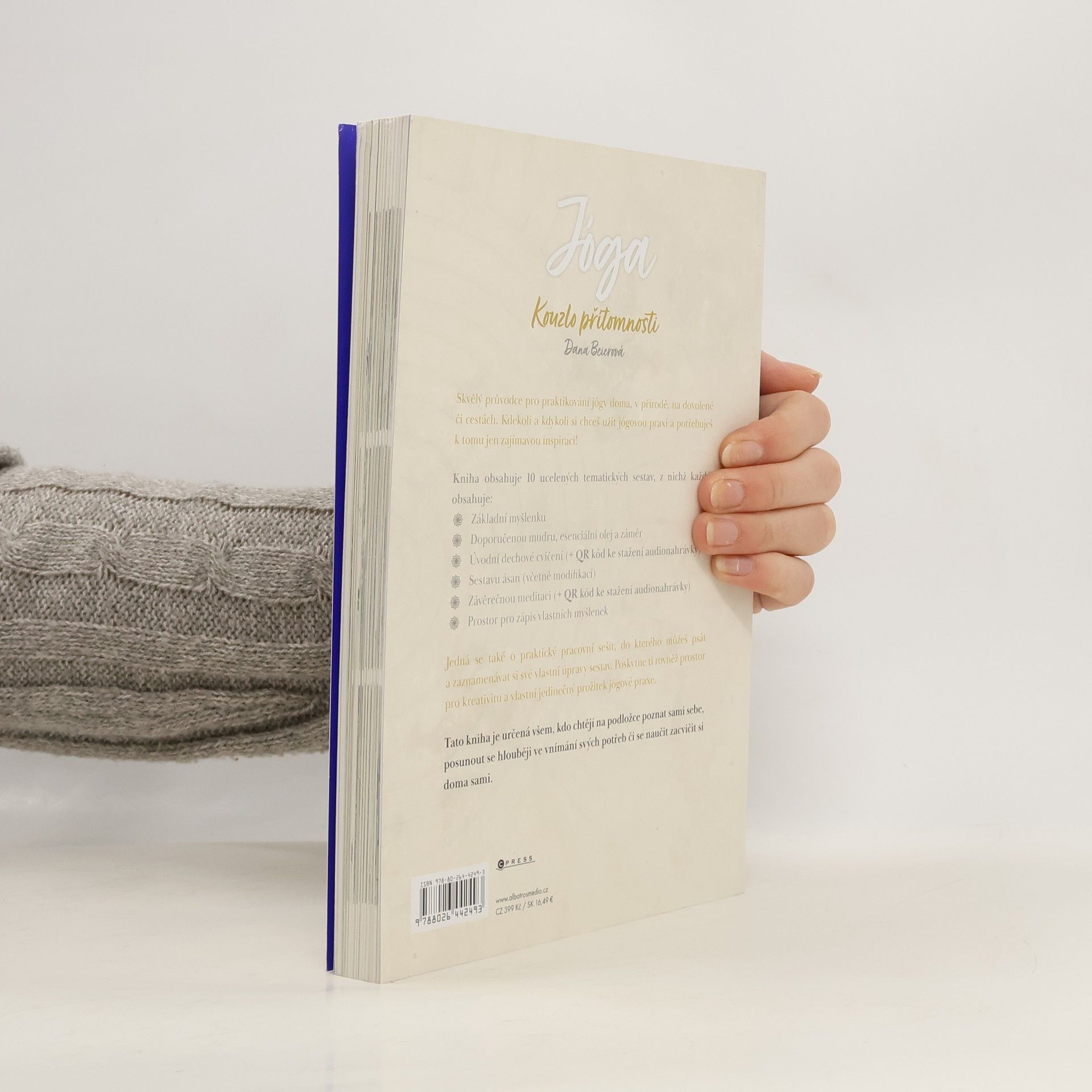 Skvělý průvodce pro praktikování jógy doma, v přírodě, na dovolené či cestách. Kniha obsahuje 10 tematických sestav, z nichž každá obsahuje: • Základní myšlenku • Doporučenou mudru, esenciální olej a záměr • Úvodní dechové cvičení • Sestavu ásan (včetně modifikací) • Závěrečnou meditaci • Prostor pro zápis vlastních myšlenek Jedná se také o praktický pracovní sešit, do kterého můžeš psát a zaznamenávat si své vlastní úpravy sestav.