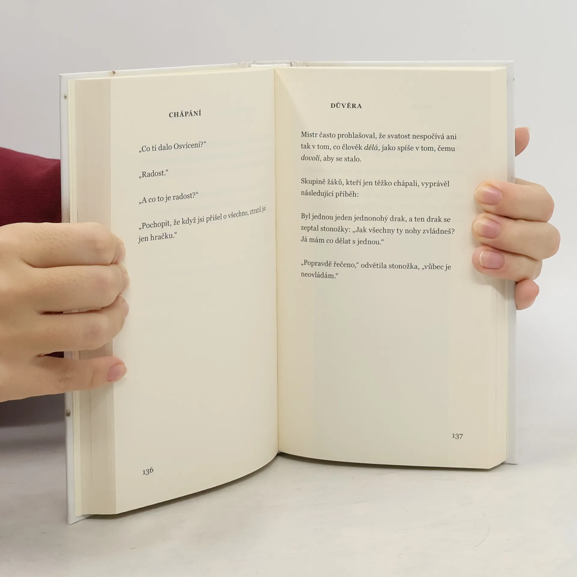 Čtení každého kratičkého příběhu v této knize Vám zabere pouhou minutu. Mistrův jazyk Vás bude pravděpodobně mást, provokovat či se Vám bude zdát přímo nesmyslný. Žel tato kniha není snadná! Nebyla napsána jako návod, ale aby probouzela.