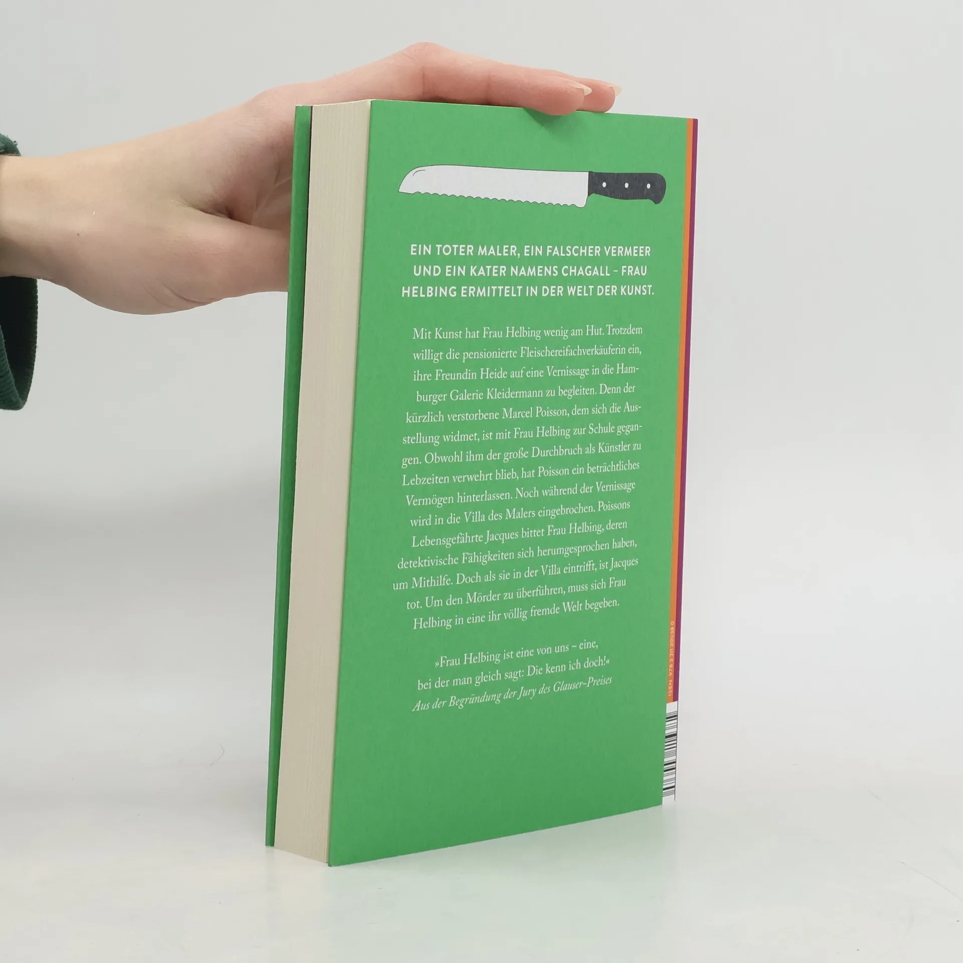 Mit Kunst hat Frau Helbing wenig am Hut. Trotzdem willigt die pensionierte Fleischereifachverkäuferin ein, ihre Freundin Heide auf eine Vernissage in die Hamburger Galerie Kleidermann zu begleiten. Denn der kürzlich verstorbene Marcel Poisson, dem sich die Ausstellung widmet, ist mit Frau Helbing zur Schule gegangen. Obwohl ihm der große Durchbruch als Künstler zu Lebzeiten verwehrt blieb, hat Poisson ein beträchtliches Vermögen hinterlassen: Er hat berühmte Gemälde kopiert und an Kunstliebhaber verkauft. Kurz nach der Vernissage wird in die Villa des Malers eingebrochen. Poissons Lebensgefährte Jacques bittet Frau Helbing, deren detektivische Fähigkeiten sich herumgesprochen haben, um Mithilfe. Doch als sie in der Villa eintrifft, ist Jacques tot - mit einem Schürhaken erschlagen. Um den Mörder zu überführen, muss sich Frau Helbing in eine ihr völlig fremde Welt begeben.