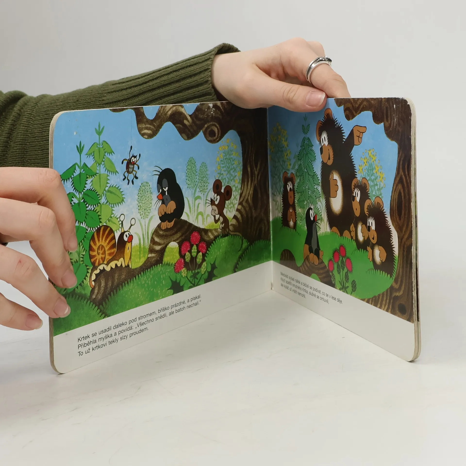 Příběh medvědí rodinky a oblíbeného krtečka. Ilustrované leporelo pro předškolní děti.