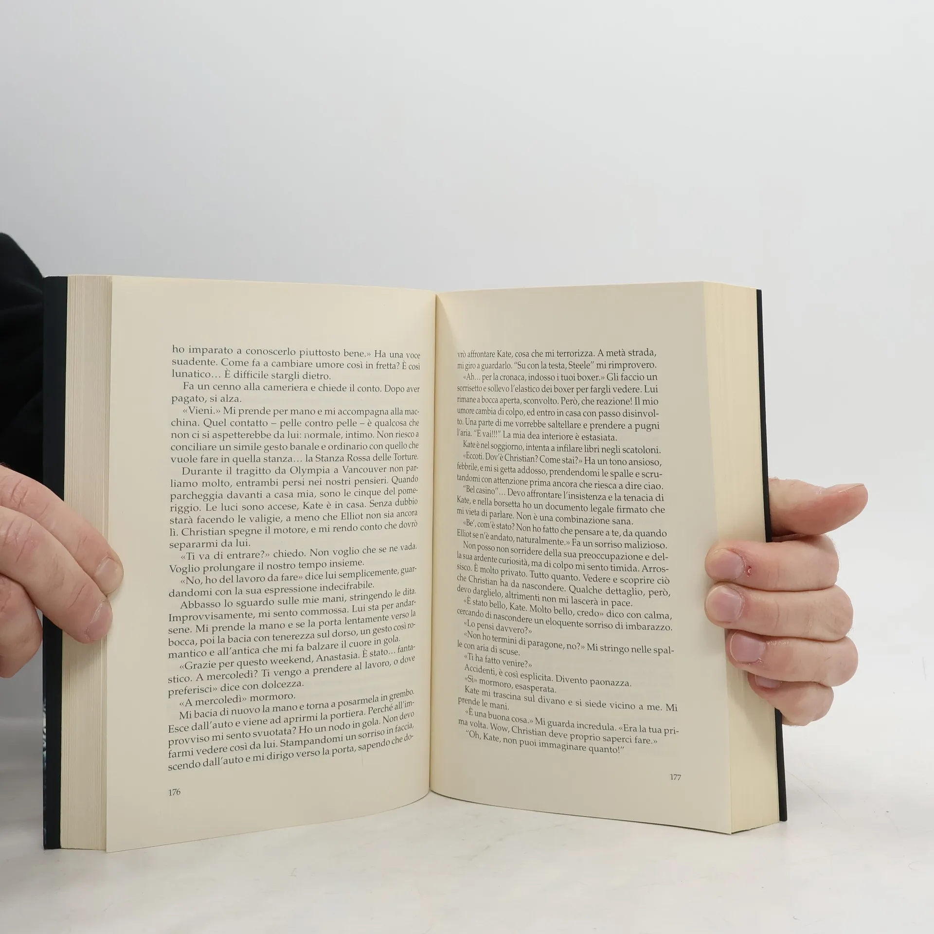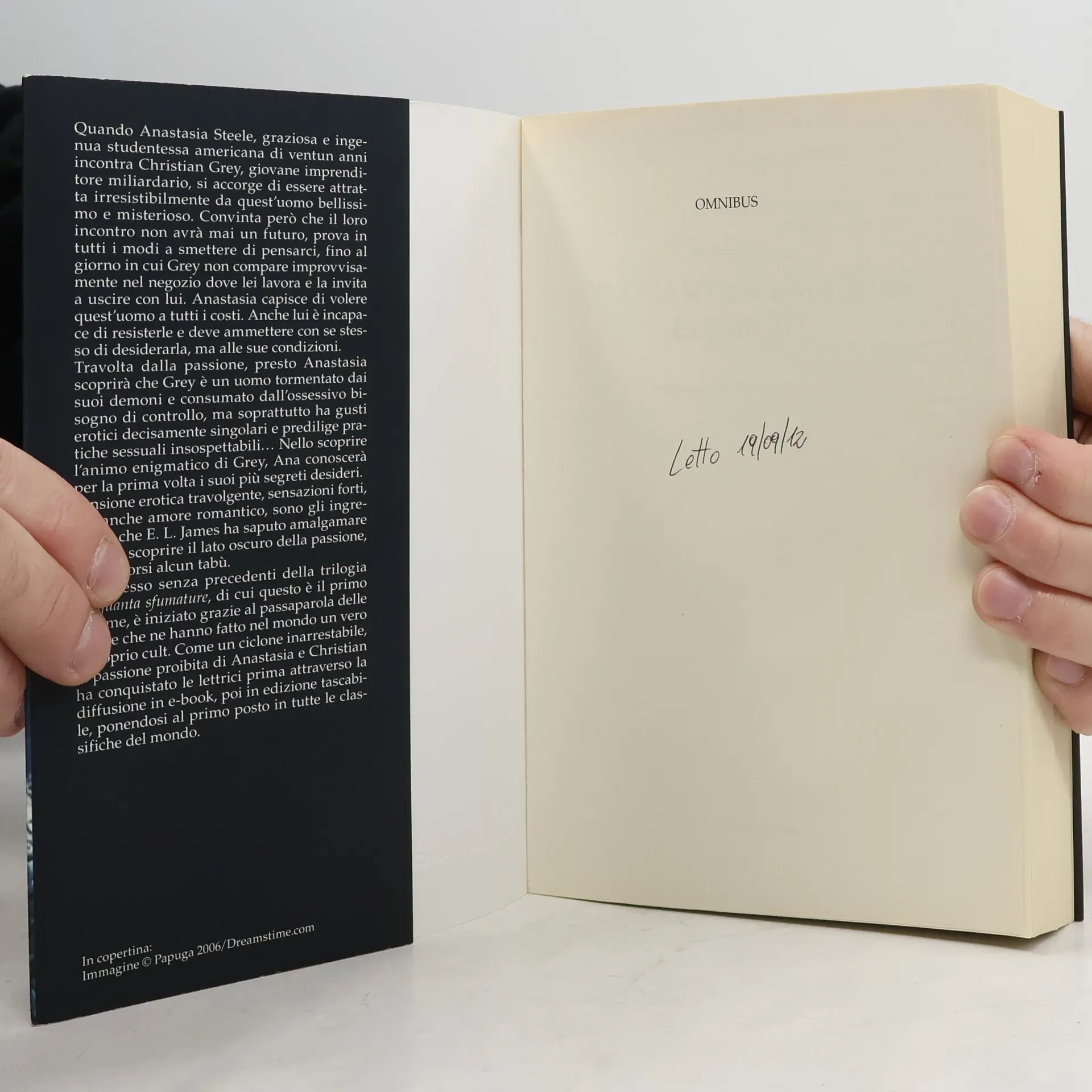 Quando Anastasia Steele, graziosa e ingenua studentessa americana di ventun anni incontra Christian Grey, giovane imprenditore miliardario, si accorge di essere attratta irresistibilmente da quest'uomo bellissimo e misterioso. Convinta però che il loro incontro non avrà mai un futuro, prova in tutti i modi a smettere di pensarci, fino al giorno in cui Grey non compare improvvisamente nel negozio dove lei lavora e la invita a uscire con lui. Anastasia capisce di volere quest'uomo a tutti i costi. Anche lui è incapace di resisterle e deve ammettere con se stesso di desiderarla, ma alle sue condizioni. Travolta dalla passione, presto Anastasia scoprirà che Grey è un uomo tormentato dai suoi demoni e consumato dall'ossessivo bisogno di controllo, ma soprattutto ha gusti erotici decisamente singolari e predilige pratiche sessuali insospettabili... Nello scoprire l'animo enigmatico di Grey, Ana conoscerà per la prima volta i suoi più segreti desideri. Tensione erotica travolgente, sensazioni forti, ma anche amore romantico, sono gli ingredienti che E. L. James ha saputo amalgamare osando scoprire il lato oscuro della passione, senza porsi alcun tabù.