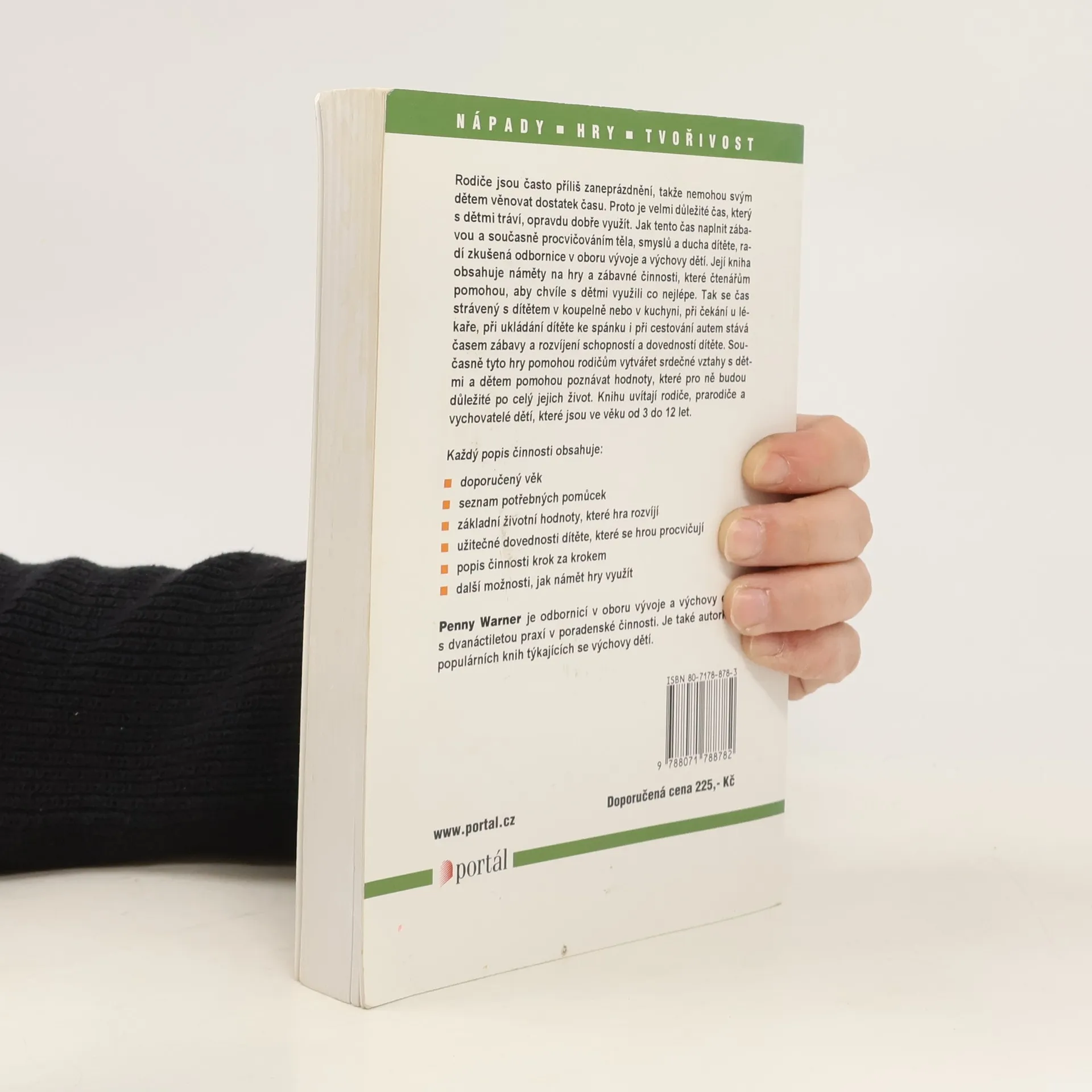 Kniha obsahuje náměty na hry a zábavné činnosti, které pomohou čtenářům využít chvíle strávené s dětmi co nejlépe. Tak se i doba v autě, v koupelně nebo v kuchyni, na procházce nebo při nemoci stává časem zábavy a rozvíjení schopností a dovedností dětí. Současně tyto hry pomohou rodičům vytvářet srdečné vztahy s dětmi a dětem pomohou poznávat hodnoty, které pro ně budou důležité po celý život. Každý popis hry zahrnuje doporučený věk, seznam potřebných pomůcek a materiálu, přínos hry - hodnoty, které přináší, schopnosti a dovednosti, které hra rozvíjí a možné náměty pro další zábavu.