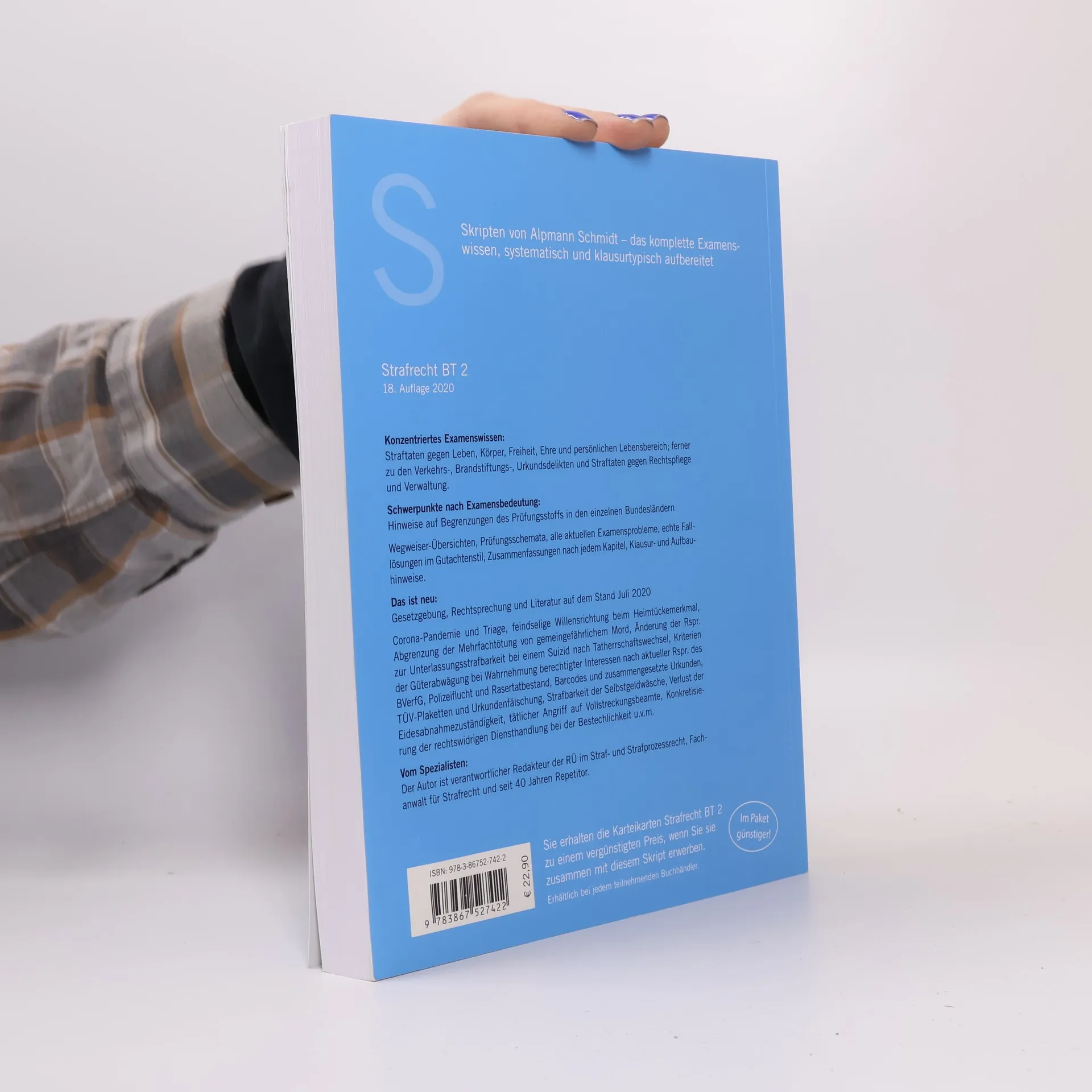 Vorteile- Noch stärkere Konzentration auf das Examenswissen- Optimale Verknüpfung von Strukturwissen und Falllösung- Übersichtliche SchemataZur ReiheAlpmann Skripten - Das komplette ExamenswissenZum WerkDas Werk behandelt folgende Delikte:- Straftaten gegen Leben, Körper, Freiheit, Ehre und persönlichen Lebensbereich- Verkehrs-, Brandstiftungs-, Urkundsdelikte- Straftaten gegen Rechtspflege und VerwaltungEs bietet Wegweiser-Übersichten, Prüfungsschemata, alle aktuellen Examensprobleme, echte Falllösungen im Gutachtenstil, Zusammenfassungen nach jedem Kapitel, Klausur- und Aufbauhinweise.ZielgruppeStudenten ab dem mittleren Semester sowie Referendare zur gezielten Wiederholung des materiellen Rechts