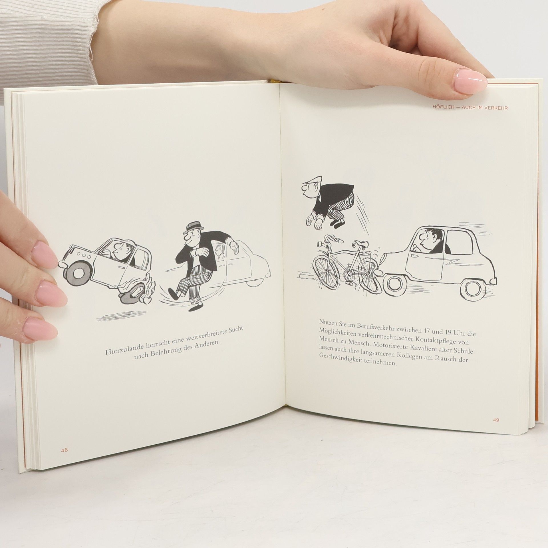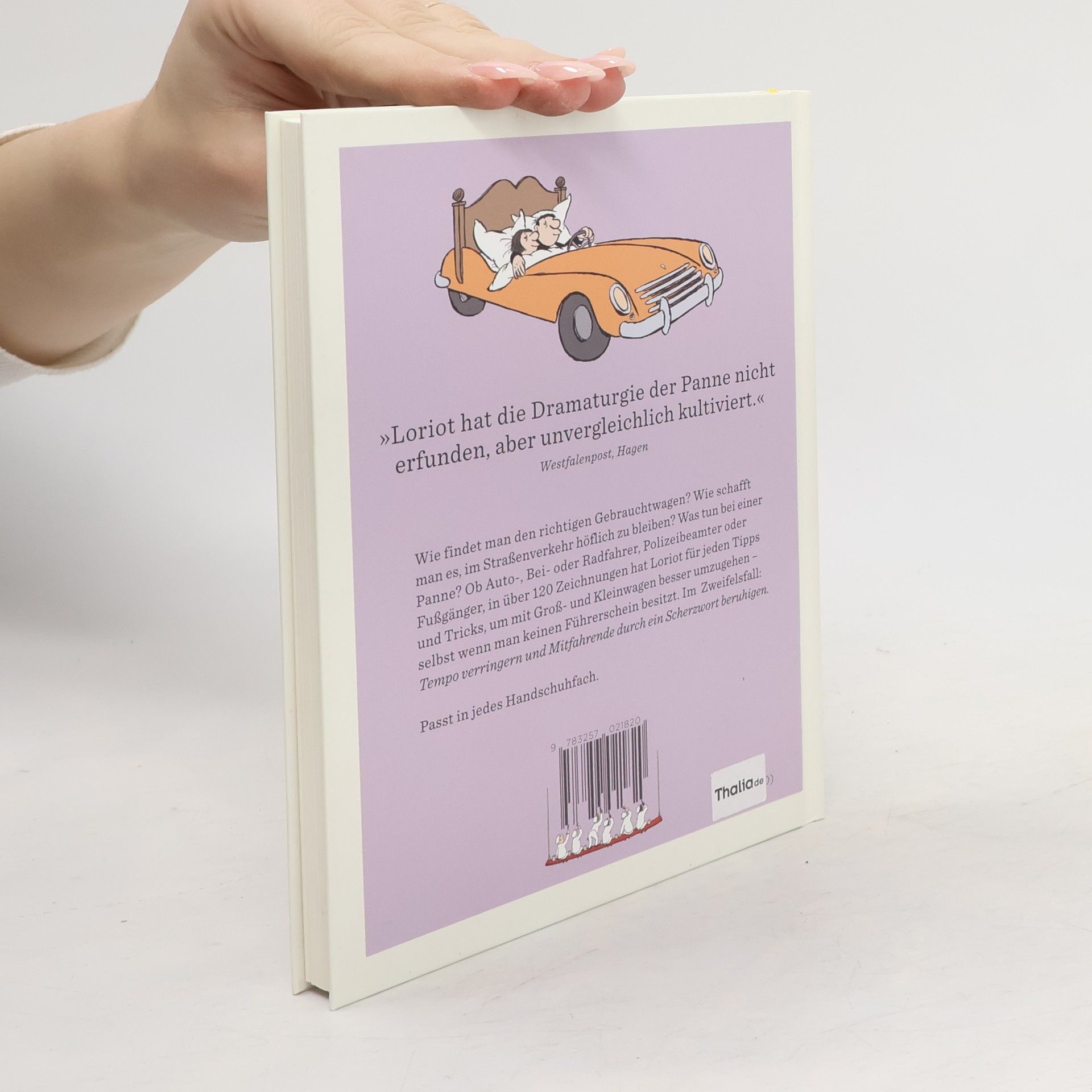 Wie findet man den richtigen Gebrauchtwagen? Wie schafft man es, im Straßenverkehr höflich zu bleiben? Was tun bei einer Panne? Ob Auto-, Bei- oder Radfahrer, Polizeibeamter oder Fußgänger, in über 120 Zeichnungen hat Loriot für jeden Tipps und Tricks, um mit Groß- und Kleinwagen besser umzugehen – selbst wenn man keinen Führerschein besitzt. Im Zweifelsfall: ›Tempo verringern und Mitfahrende durch ein Scherzwort beruhigen.‹
