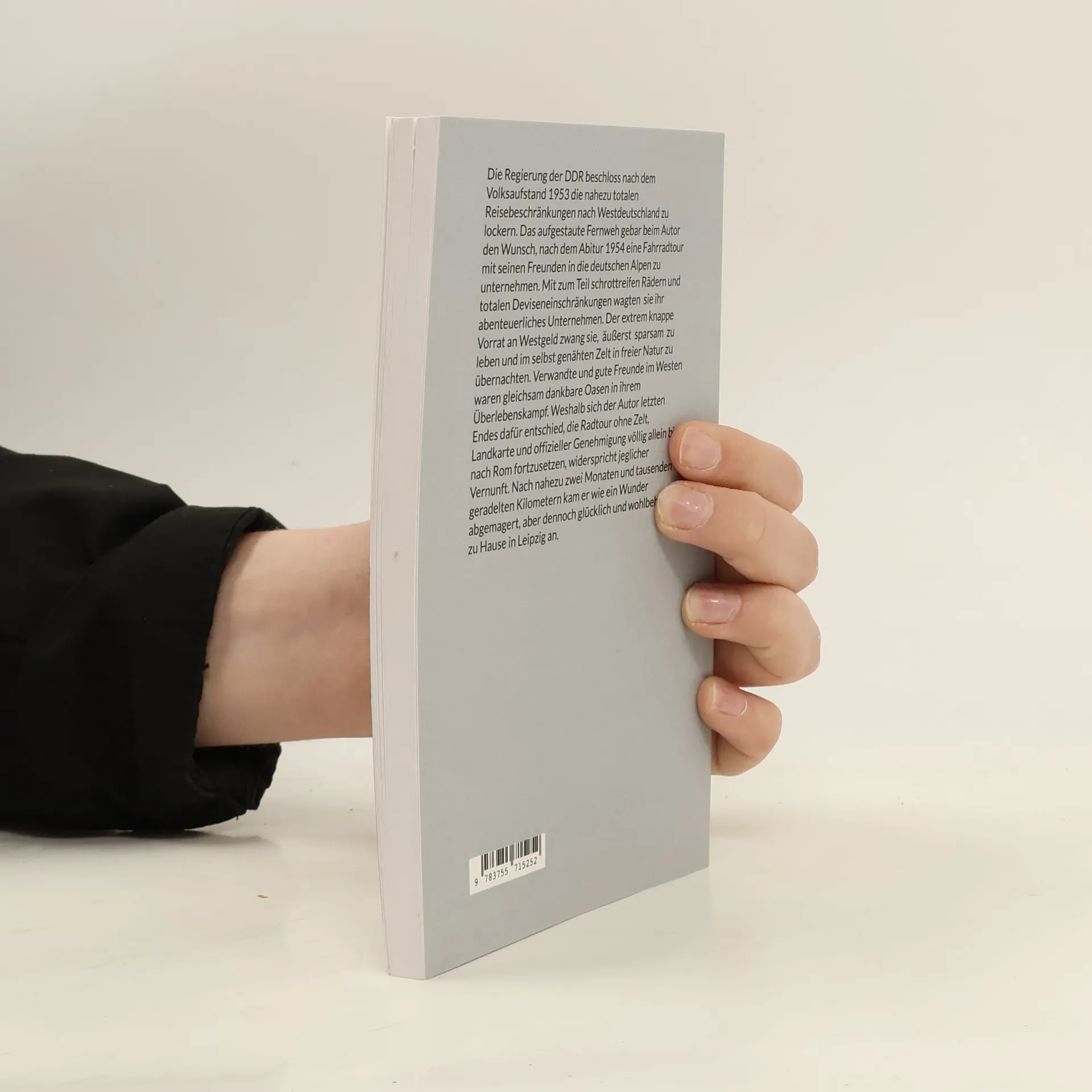 Die Regierung der DDR beschloss nach dem Volksaufstand 1953 die nahezu totalen Reisebeschränkungen nach Westdeutschland zu lockern. Das aufgestaute Fernweh gebar beim Autor den Wunsch, nach dem Abitur 1954 eine Fahrradtour mit seinen Freunden in die deutschen Alpen zu unternehmen. Mit zum Teil schrottreifen Rädern und totalen Deviseneinschränkungen wagten sie ihr abenteuerliches Unternehmen. Der extrem knappe Vorrat an Westgeld zwang sie, äußerst sparsam zu leben und im selbst genähten Zelt in freier Natur zu übernachten. Verwandte und gute Freunde im Westen waren gleichsam dankbare Oasen in ihrem Überlebenskampf. Weshalb sich der Autor letzten Endes dafür entschied, die Radtour ohne Zelt, Landkarte und offizieller Genehmigung völlig allein bis nach Rom fortzusetzen, widerspricht jeglicher Vernunft. Nach nahezu zwei Monaten und tausenden geradelten Kilometern kam er wie ein Wunder abgemagert, aber dennoch glücklich und wohlbehalten zu Hause in Leipzig an.