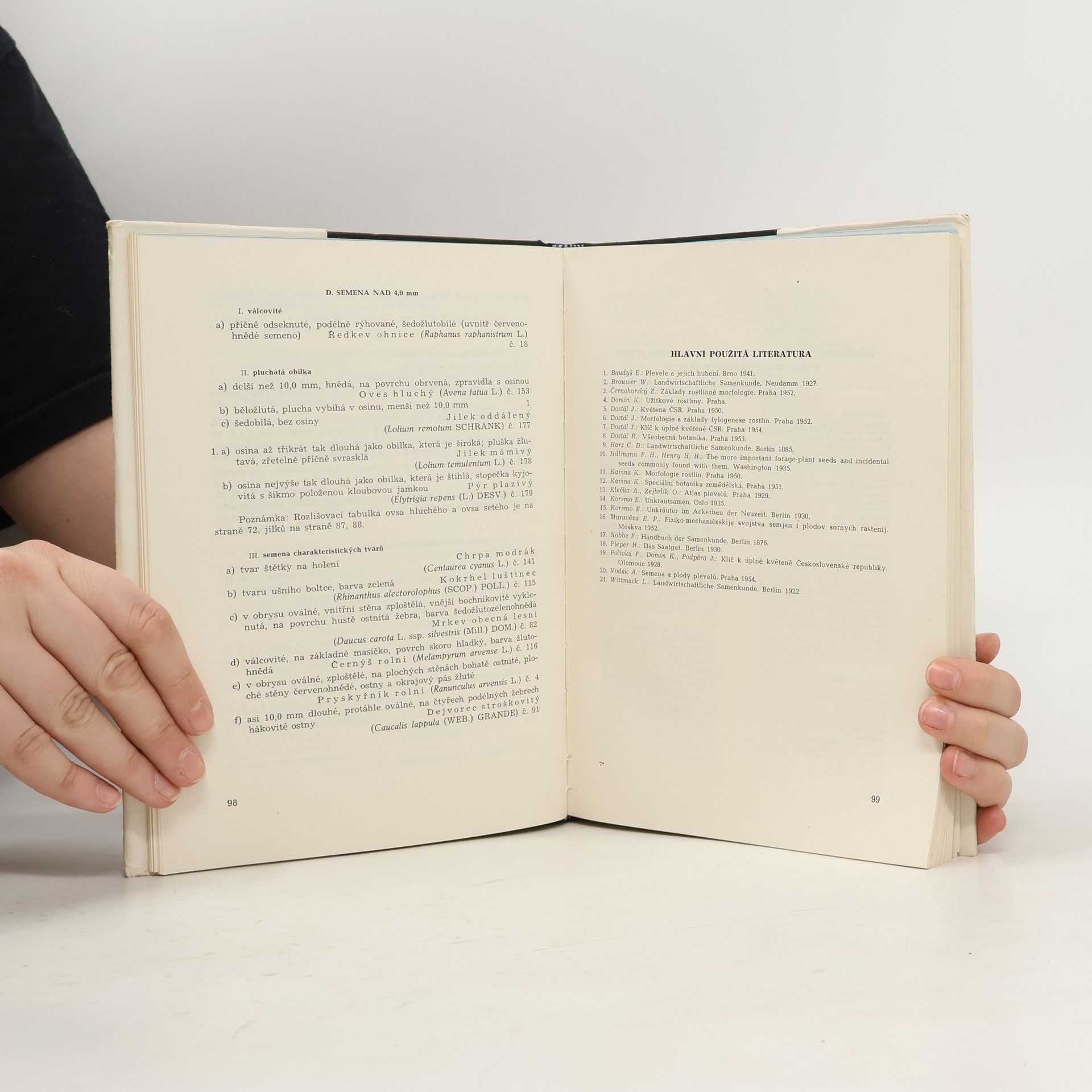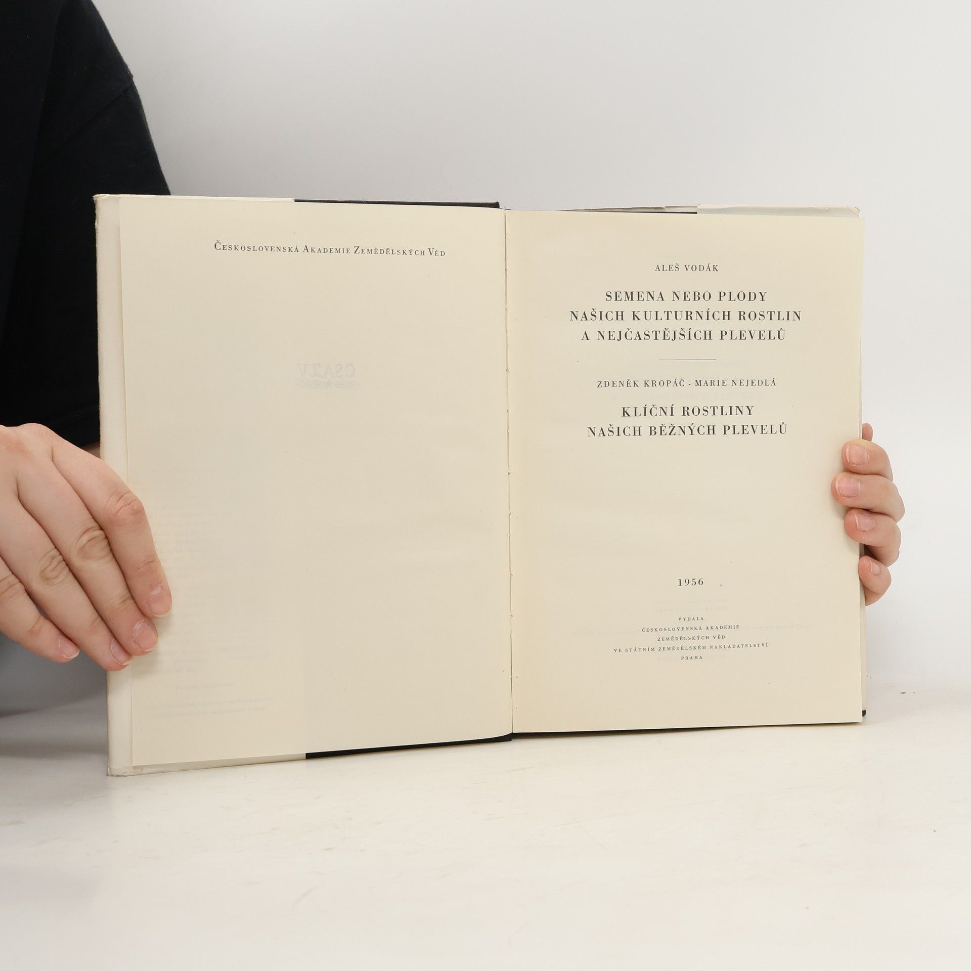 Obsahuje přítisk: Klíční rostliny našich běžných plevelů (Zdeněk Kropáč, Marie Nejedlá). 1. stať: Popis semen nebo plodů pěstovaných plodin a obvykle se vyskytujících plevelů. Publikace je uspořádána formou klíče k určování plevele. Uspořádání ostatních plodů a semen je provedeno podle botanické příslušnosti do čeledí a je doplněno rozlišovacími tabulkami. 2. stať: Publikace je vhodnou pomůckou k určování klíčních rostlin nejrozšířenějších polních plevelů. Pomáhá při stanovení prognosy zaplevelení a při volbě vhodných hubících prostředků. Je určena pro zemědělskou praxi, výzkum a školy.