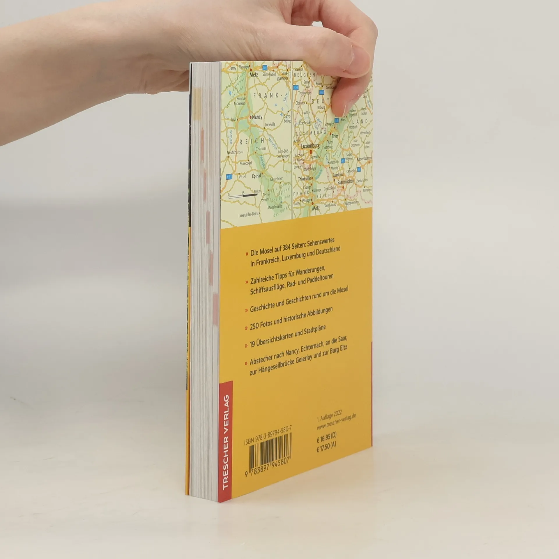 Romantische Städtchen, mächtige Burgen und Schlösser säumen die Mosel in Frankreich, Luxemburg und Deutschland, aber auch Wälder, Wiesen und natürlich Weinberge. Der Reiseführer beschreibt detailliert alle Sehenswürdigkeiten und gibt viele Anregungen für Besichtigungen, Wanderungen, Rad- und Schiffstouren. Aktuelle Tipps zu den schönsten Hotels, Camping- und Wohnmobilplätzen sowie zu den besten Einkehrmöglichkeiten erleichtern die Planung und machen Lust auf einen Urlaub an der Mosel. Bekannte Städte an der Mosel wie Metz, Trier, Bernkastel-Kues, Cochem und Koblenz werden in diesem Reiseführer ausführlich vorgestellt. Abstecher führen zur Ritterburg Eltz, nach Nancy, Echternach, Saarburg und zur Hängeseilbrücke Geierlay. Zahlreiche Extra-Texte bringen den Besuchern die Geschichte und Geschichten der Moselregion näher, Übersichtskarten und Stadtpläne helfen bei der Orientierung vor Ort. Dem Weinland Mosel ist ein umfangreiches Kapitel gewidmet.