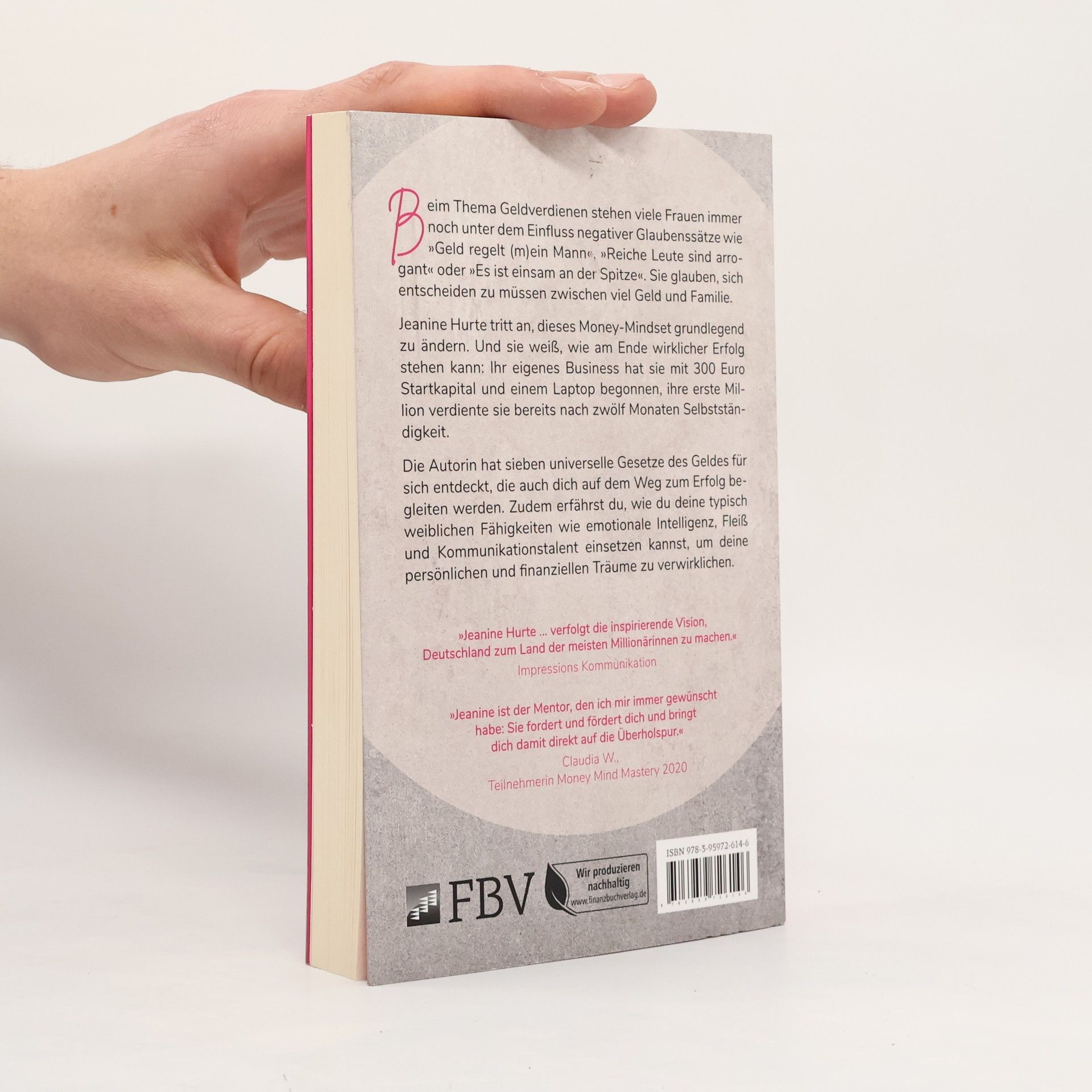 Beim Thema Geldverdienen stehen viele Frauen immer noch unter dem Einfluss negativer Glaubenssätze wie »Geld regelt (m)ein Mann« und »Reiche Leute sind arrogant« oder »Es ist einsam an der Spitze«. Sie glauben sich entscheiden zu müssen zwischen viel Geld und Familie. Jeanine Hurte tritt an, dieses Money-Mindset grundlegend zu ändern. Sie will Frauen ermutigen, das Entweder-oder durch ein Und zu ersetzen. Und sie weiß, wie am Ende wirklicher Erfolg stehen kann: Ihr eigenes Business hat sie mit 300 Euro Startkapital und einem Laptop begonnen, ihre erste Million verdiente sie bereits nach zwölf Monaten Selbstständigkeit. Die Autorin hat sieben universelle Gesetze des Geldes für sich entdeckt, die sie an ihre Leserinnen weitergeben möchte. Es sind Leitsätze wie Das Gesetz des reinen Potenzials, Das Gesetz des geringsten Aufwandes oder Das Gesetz des Loslassens. In ihrem Buch zeigt sie, wie Frauen ihre typisch weiblichen Fähigkeiten wie emotionale Intelligenz, Fleiß und Kommunikationstalent einsetzen können, um ihre persönlichen und finanziellen Träume zu verwirklichen.