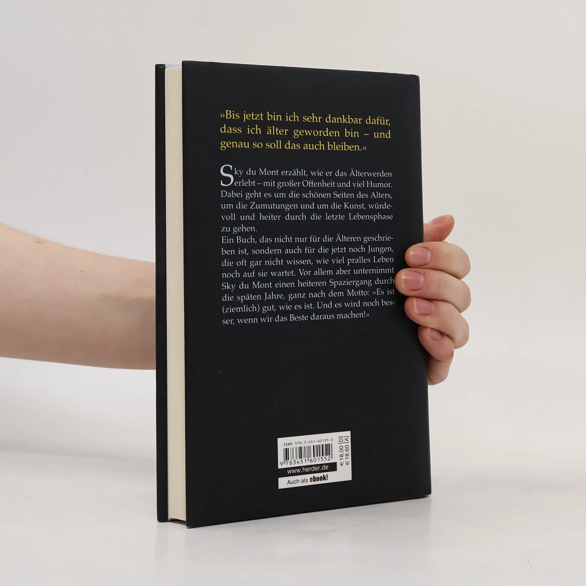 Sky du Mont erzählt übers Älterwerden. Dabei geht es um die schönen Seiten des Alters und die Zumutungen ebenso wie um die Kunst, würdevoll und heiter durch die letzte Lebensphase zu gehen. Nach mehreren Romanen mit fiktivem Alter Ego ist dieses autobiograpische Buch das bislang persönlichste Werk des Autors. Ein Buch, das nicht nur für die Älteren geschrieben ist, sondern auch für die jetzt noch Jungen, die oft gar nicht wissen, wieviel pralles Leben noch auf sie zukommt, wenn sie das „Altern“ annehmen, wie großartig ihre Großeltern sind, wie wertvoll Wissen und Erfahrung der Alten auch für sie sein können. Vor allem aber möchte der Autor einen heiteren Spaziergang durch die späten Jahre unternehmen und allen zurufen: „Freunde, es ist (ziemlich) gut, wie es ist. Und es wird noch besser, weil wir das Beste daraus machen!“