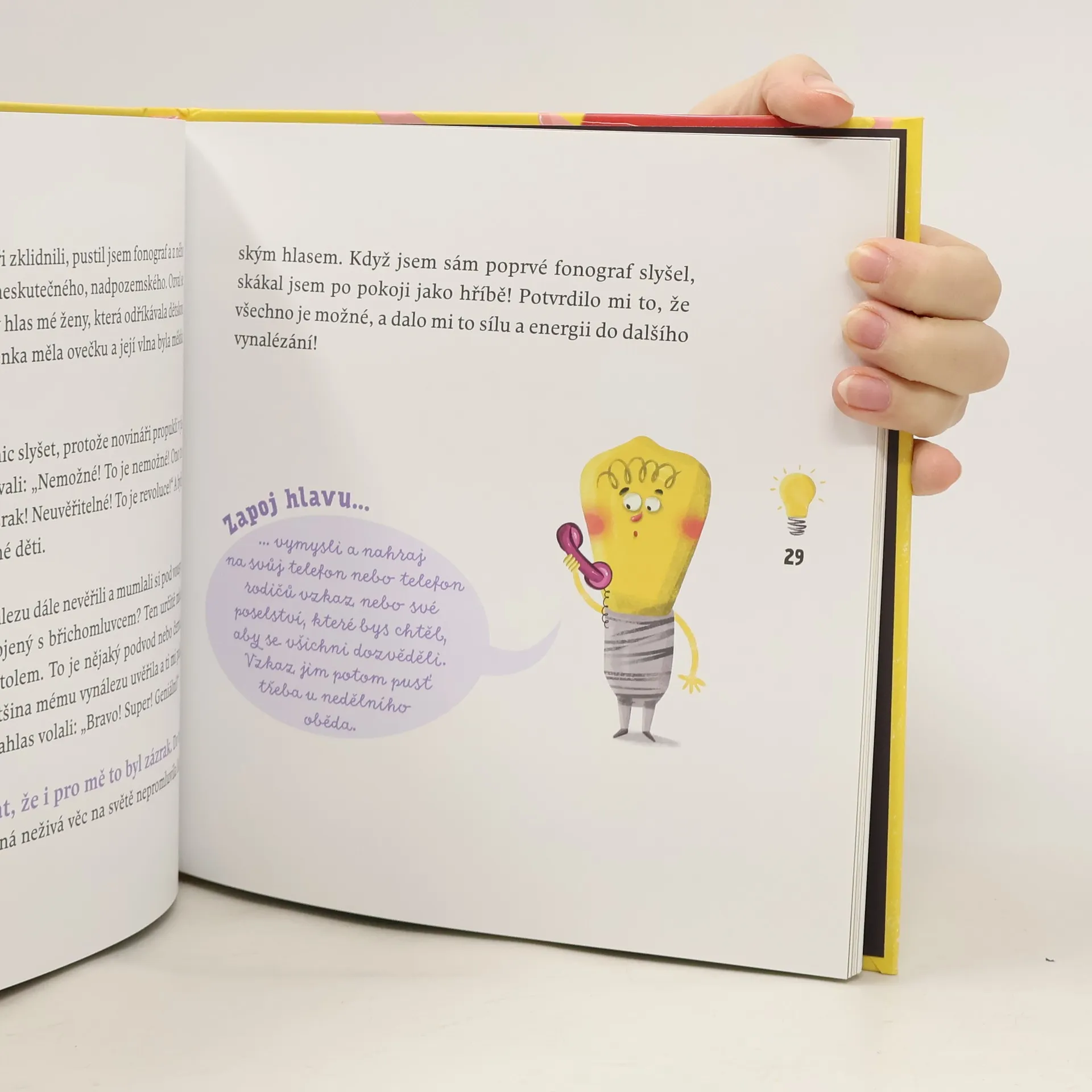 Máte v ruce nebo poblíž sebe mobilní telefon? Trávíte právě čas na svém počítači? Je večer a vy zrovna svítíte? Vše funguje na bázi správného využití elektrické energie s potomky přístrojů, u jejichž zrodu stál Thomas Alva Edison. V knize sám vynálezce vypráví zábavnou formou o svém životě, o pokusech nejen s elektrickým proudem, ale především o píli, vytrvalosti a nadšení, pomocí kterých dokázal velké věci. Buďte na chvíli spolu s dětmi u zrodu jeho vynálezů a inspirujte se jeho příběhem!
