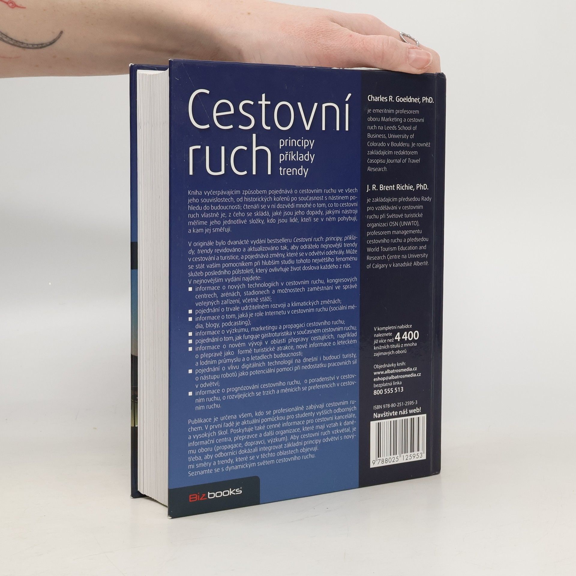 Nejprodávanější učebnice v oboru podrobně zkoumá cestovní ruch ve všech jeho aspektech, od historických kořenů po současnost a budoucnost. Čtenáři se dozvědí, co cestovní ruch obnáší, jaké jsou jeho složky a dopady, a jakými nástroji je možné měřit jeho aspekty. Dvanácté vydání bestselleru bylo revidováno a aktualizováno, aby reflektovalo nejnovější trendy a změny v odvětví. Publikace slouží jako cenný nástroj pro hlubší studium tohoto významného fenoménu služeb, který ovlivňuje životy mnoha lidí. Obsahuje informace o nových technologiích, trvale udržitelném rozvoji, klimatických změnách, roli internetu, marketingu a propagaci cestovního ruchu, gastroturistice, novinkách v přepravě cestujících a vlivu digitálních technologií na turisty. Je určena profesionálům v oboru, zejména studentům vysokých škol, a poskytuje cenné informace pro cestovní kanceláře, informační centra a další organizace. Odborníci musí integrovat základní principy s novými trendy, aby cestovní ruch mohl vzkvétat. Autoři, Charles R. Goeldner a J. R. Brent-Richie, jsou uznávaní odborníci v oblasti marketingu a cestovního ruchu.