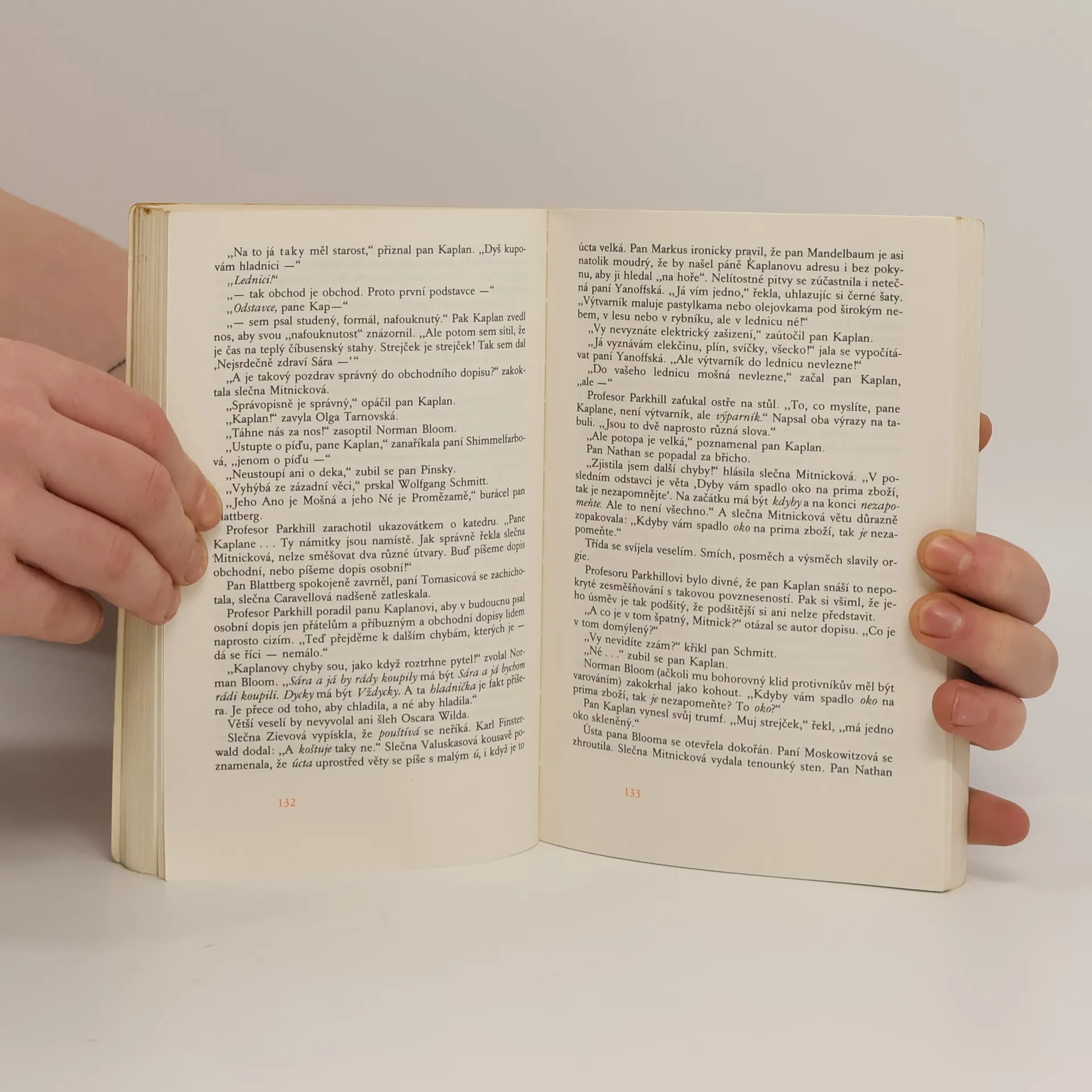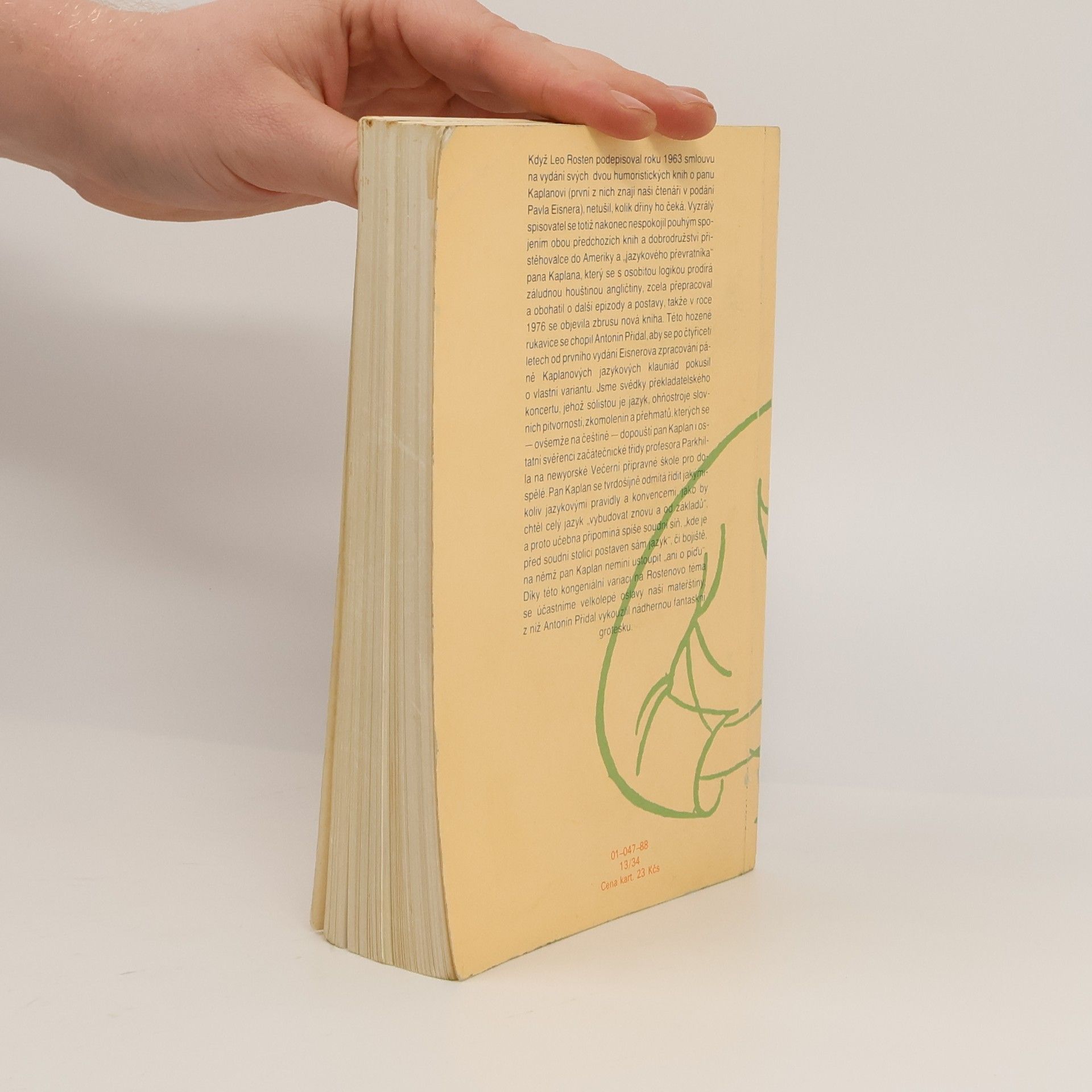Když Leo Rosten podepisoval roku 1963 smlouvu na vydání svých dvou humoristických knih o panu Kaplanovi (první z nich znají naši čtenáři v podání Pavla Eisnera), netušil, kolik dřiny ho čeká. Vyzrálý spisovatel se totiž nakonec nespokojil pouhým spojením obou předchozích knih a dobrodružství přistěhovalce do Ameriky a „jazykového převratníka“ pana Kaplana, který se s osobitou logikou prodírá záludnou houštinou angličtiny, zcela přepracoval a obohatil o další epizody a postavy, takže v roce 1976 se objevila zbrusu nová kniha. Této hozené rukavice se chopil Antonín Přidal, aby se po čtyřiceti letech od prvního vydání Eisnerova zpracování páně Kaplanových jazykových klauniád pokusil o vlastní variantu. Jsme svědky překladatelského koncertu, jehož sólistou je jazyk, ohňostroje slovních pitvorností, zkomolenin a přehmatů, kterých se — ovšemže na češtině — dopouští pan Kaplan i ostatní svěřenci začátečnické třídy profesora Parkhilla na newyorské Večerní přípravné škole pro dospělé. Pan Kaplan se tvrdošíjně odmítá řídit jakýmikoliv jazykovými pravidly a konvencemi, jako by chtěl celý jazyk „vybudovat znovu a od základů'', a proto učebna připomíná spíše soudní síň, „kde je před soudní stolici postaven sám jazyk“, či bojiště, na němž pan Kaplan nemíní ustoupit „ani o píďu“. Díky této kongeniální variaci na Rostenovo téma se účastníme velkolepé oslavy naší mateřštiny, z níž Antonín Přidal vykouzlil nádhernou fantaskní grotesku.