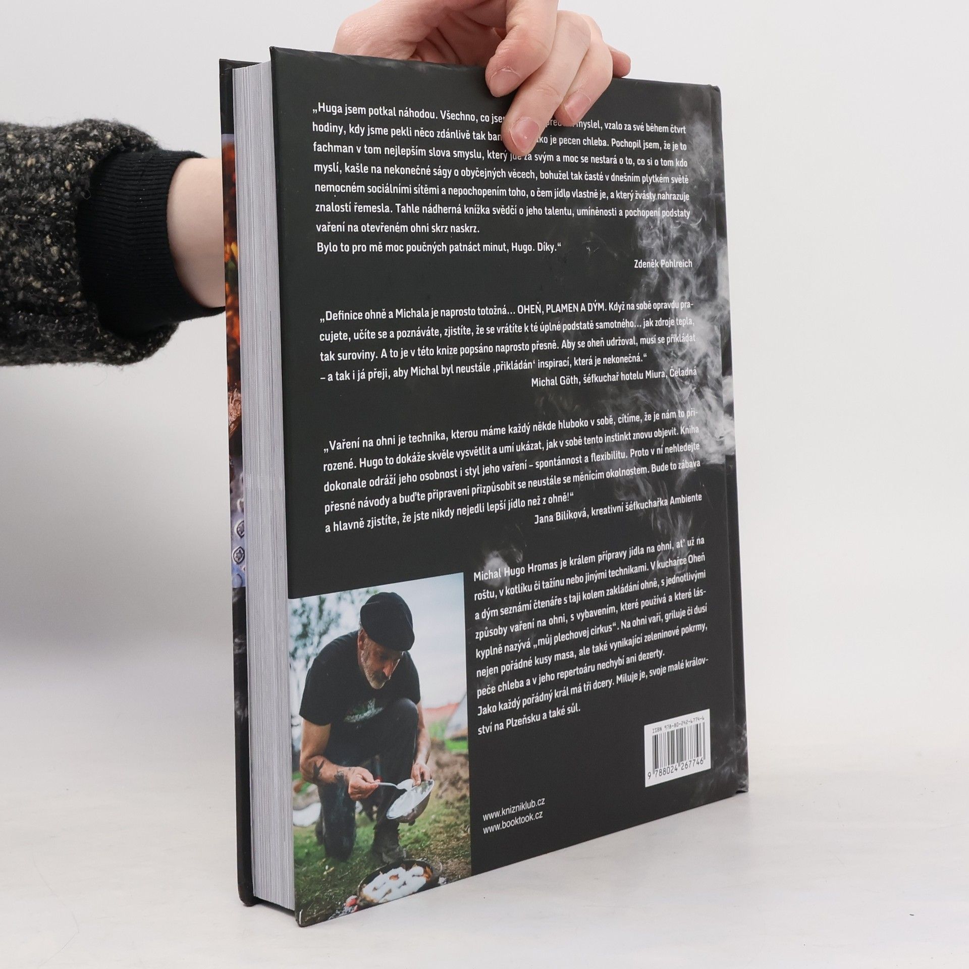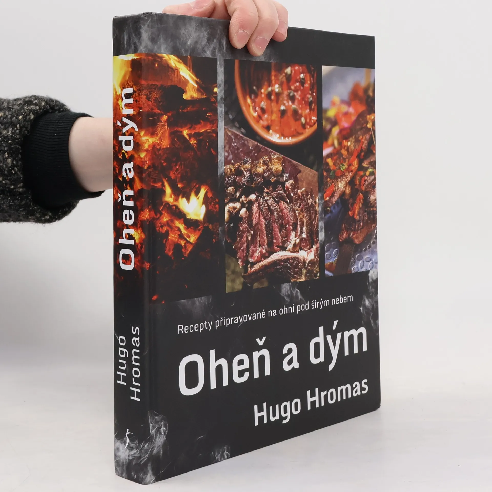 Originální kuchař Michal Hugo Hromas připravuje všechna jídla na ohni, ať už na roštu, v kotlíku či tažínu nebo jinými technikami. Ve své první autorské kuchařce Oheň a dým seznámí čtenáře s taji kolem zakládání ohně, s jednotlivými technikami vaření na ohni, s vybavením, které používá, a které láskyplně nazývá „můj plechovej cirkus“. Na ohni připravuje nejen pořádné kusy masa, ale také vynikající zeleninové pokrmy, peče chleba a dokonce i dezerty. Vaření na venkovním ohni je nejnovějším trendem světové gastronomie a Michal Hromas patří mezi přední mistry tohoto stylu. Velká, krásná, graficky originální kuchařka, ze které od první stránky sálá oheň a stoupá kouř, patří i do kategorie „coffee table“ kuchařek, tedy kuchařek, ze kterých budete nejen vařit, ale také si v nich číst a s potěšením si je prohlížet.