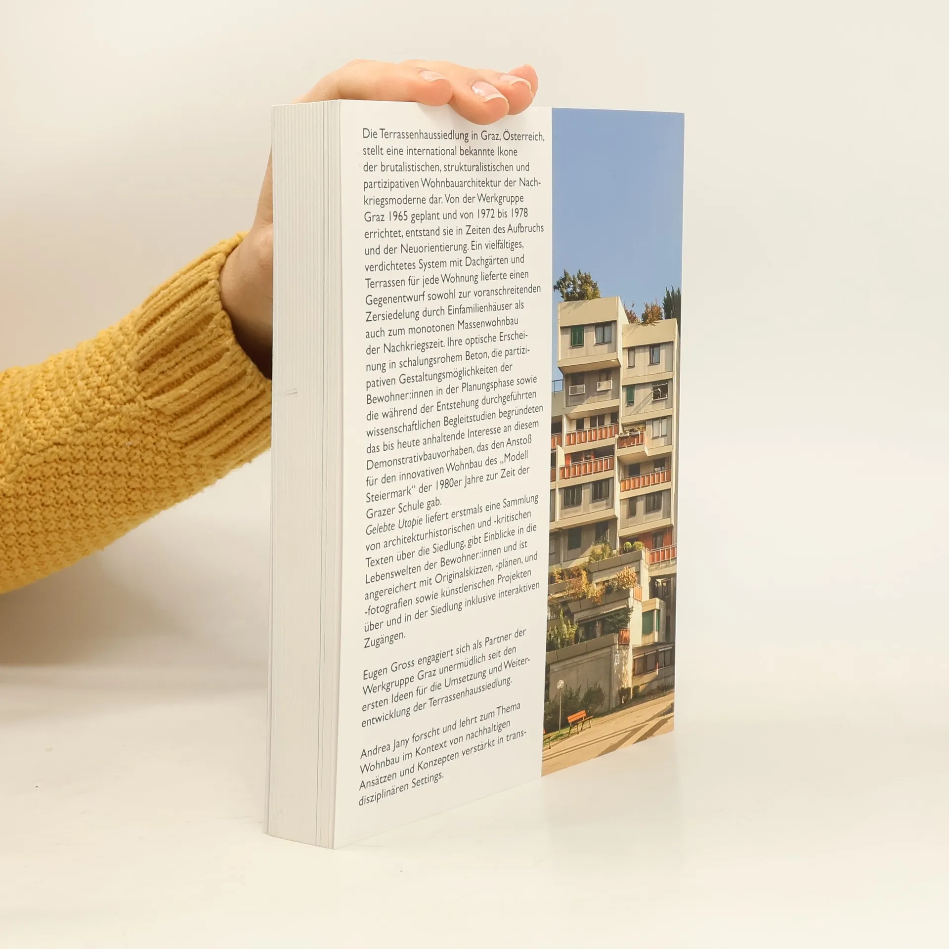 In einer Zeit des gesellschaftlichen Aufbruchs plante die Werkgruppe Graz im Jahre 1965 die Terrassenhaussiedlung in Graz-St. Peter, die zwischen 1972 und 1978 gebaut wurde. Die Planer - Mitglieder der avantgardistischen Künstlervereinigung Forum Stadtpark - wandten sich gegen das verfestigte System des Wohnbaus, das von monotoner Gestaltung und Zersiedelung durch Einfamilienhäuser geprägt war. Sie vertraten den utopischen Anspruch einer Beteiligung der Bewohner*innen am Planungsprozess, der seine bauliche Entsprechung in einer strukturalistischen Grundstruktur mit anpassbaren Wohneinheiten fand. Internationale Anerkennung erlangte die Siedlung, die sich in vier terrassierten Blöcken aus Sichtbeton am Grazer Stadtrand erhebt, durch ihre brutalistische und skulpturale Erscheinung. Gelebte Utopie liefert erstmals eine Sammlung von architekturhistorischen und -kritischen Texten über die Siedlung, gibt Einblicke in die Lebenswelten der Bewohner*innen und ist angereichert mit künstlerischen Projekten.