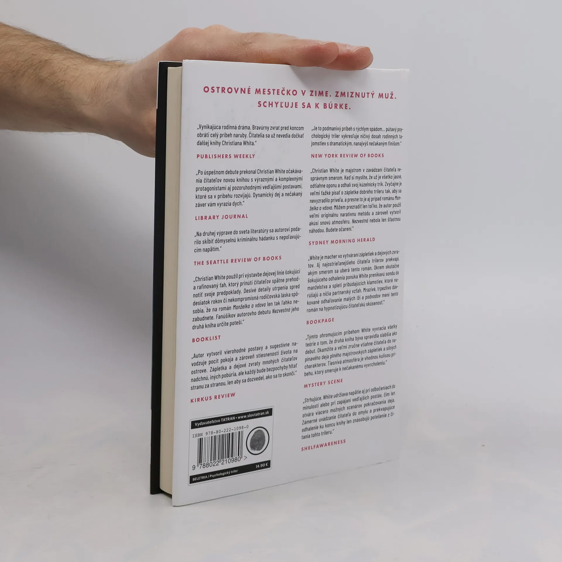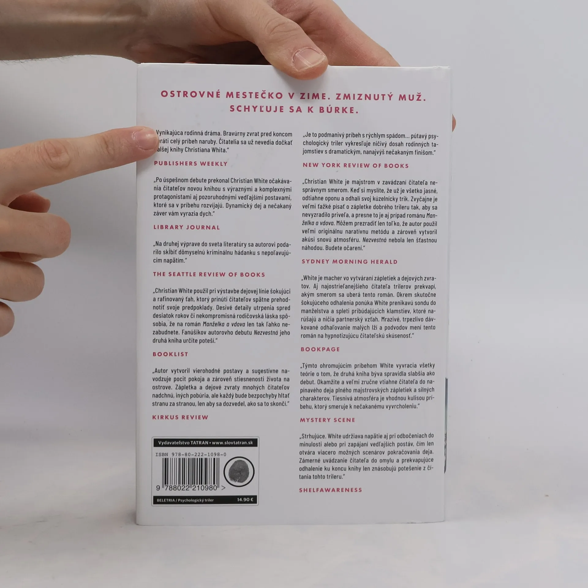Príbeh Christiana Whita sa odohráva v opustenom austrálskom letovisku na ostrove Belport počas zimy. Vdova Kate a manželka Abby prežívajú paralelné príbehy, kde sa zdá, že ich osudy sú nezlučiteľné, no postupne sa prelínajú a vedú k dramatickému stretnutiu, pri ktorom si navzájom zachraňujú rodiny. Kate, elegantná a závislá na svojom manželovi Johnovi, začne tušiť, že v ich manželstve niečo nie je v poriadku. Po jeho zmiznutí z lekárskeho sympózia v Londýne a zistení, že už tri mesiace nepracuje, si uvedomí, že žila s cudzím človekom. Na druhej strane, Abby, jednoduchá predavačka, žije spokojný život na ostrove, stará sa o svojho manžela Raya a deti, no jej záľuba v preparovaní zvierat a blízky vzťah s lesbickou priateľkou, miestnou policajtkou, naznačujú, že nie všetko je tak, ako sa zdá. Konflikty medzi mužmi a následne aj medzi Kate a Abby postupne vychádzajú na povrch. Autor majstrovsky odhaľuje kľúčové, no mätúce skutočnosti, ktoré ovplyvňujú osudy postáv. Brilantne spracovaný príbeh s napínavou atmosférou núti čitateľa zamyslieť sa nad tým, ako dobre poznáme tých, ktorých milujeme.