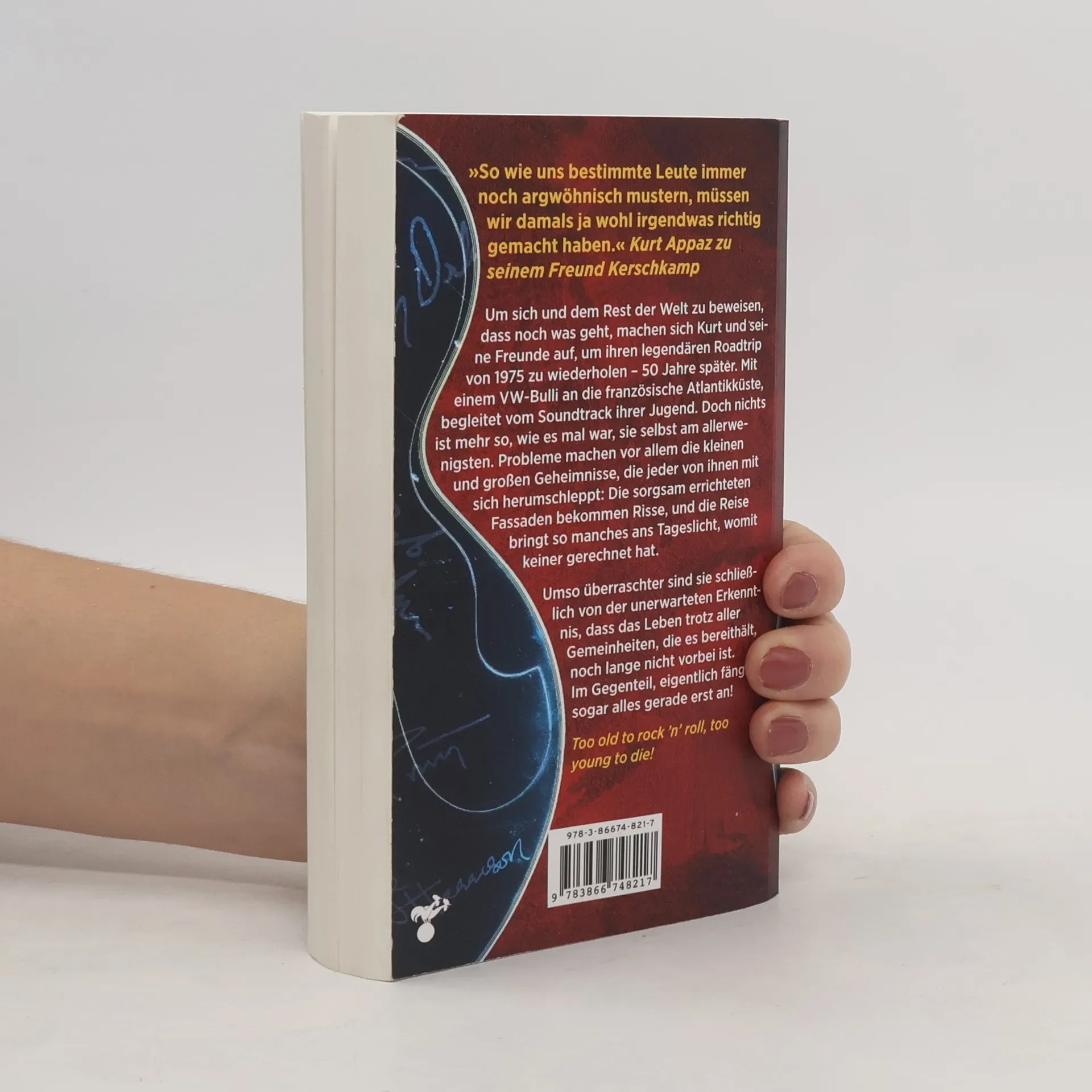 Too old to rock ’n’ roll, too young to die – ein Roadtrip mit dem Soundtrack der Siebziger! Fast fünfzig Jahre ist es her, dass Kurt Appaz und seine Freunde gleich nach dem vermasselten Abitur in einem VW-Bus an die französische Atlantikküste gefahren sind. Sie wollten ihre Freiheit auskosten und später mal ein ganz anderes Leben führen. Die Träume von damals haben sich nicht erfüllt, alles ist anders gekommen, als sie sich erhofft hatten. Aber sie haben ihre Träume nicht vergessen – und so wollen die fünf sich und dem Rest der Welt beweisen, dass da noch was geht. Wieder führt der Weg mit einem VW-Bus zum Atlantik, auf derselben Route wie 1975. Doch die Zeit lässt sich nicht zurückdrehen. Es sind nicht nur die Macken und Verschrobenheiten, die mit dem Alter stärker geworden sind, sondern auch die kleinen und großen Geheimnisse, die jeder mit sich herumschleppt. Die sorgsam errichteten Fassaden bekommen Risse, die sich nicht mehr verbergen lassen, und die Reise bringt so manches ans Tageslicht, mit dem keiner gerechnet hat. Aber bei allen Pannen und Enttäuschungen finden sie schließlich doch einen Weg für sich – es ist noch lange nicht vorbei, eigentlich fängt sogar alles gerade erst an. Die Fortsetzung der 70er-Jahre-Hannover-Romane »Der Junge, der mit Jimi Hendrix tanzte« und »1975« sowie der Abschluss der Kurt-Appaz-Reihe.
