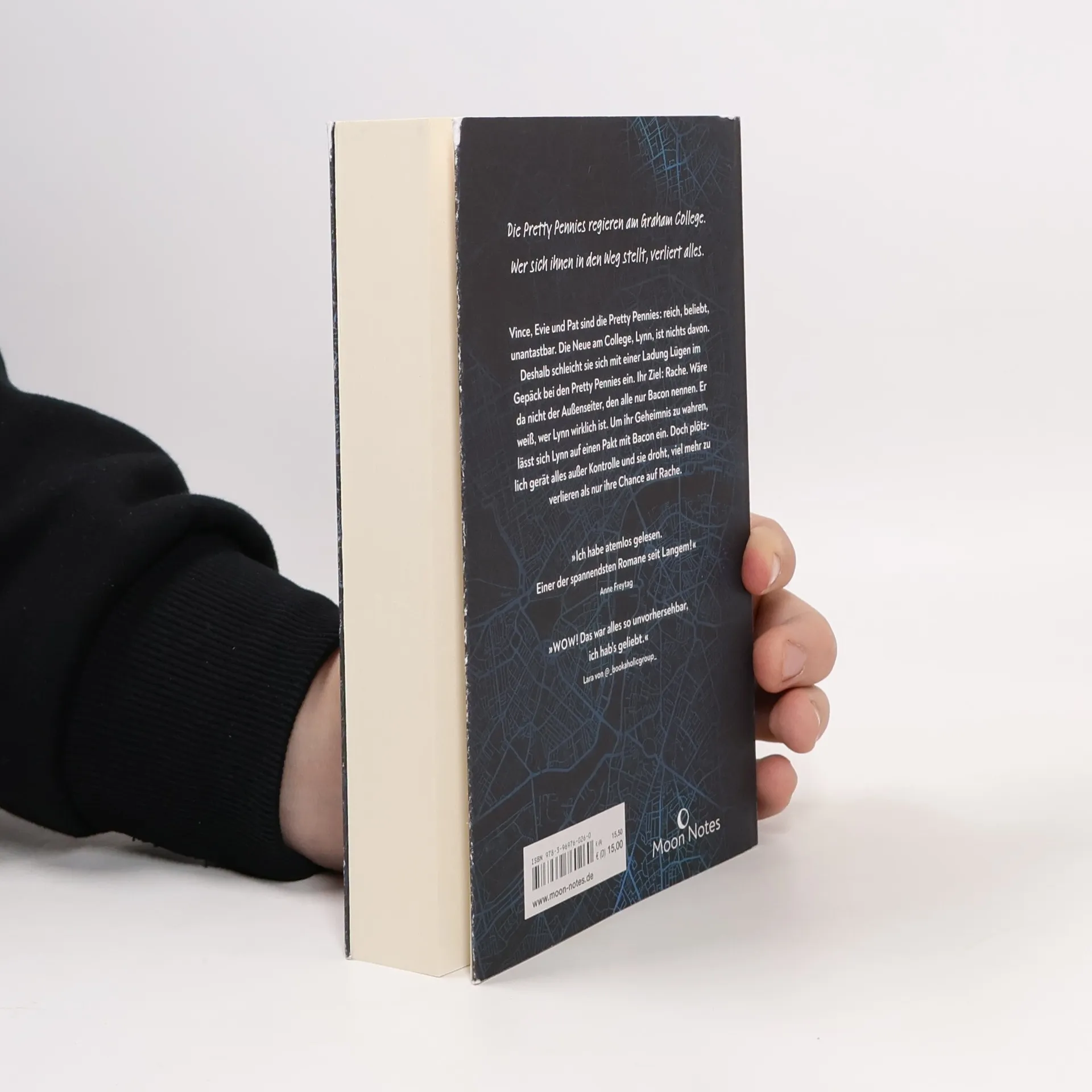 "Vince, Evie und Pat sind die Pretty Pennies: reich, beliebt, unantastbar. Die Neue am College, Lynn, ist nichts davon. Deshalb schleicht sie sich mit einer Ladung Lügen im Gepäck bei den Pretty Pennies ein. Ihr Ziel: Rache. Wäre da nicht der Außenseiter, den alle nur Bacon nennen. Er weiß, wer Lynn wirklich ist. Um ihr Geheimnis zu wahren, lässt sich Lynn auf einen folgenschweren Pakt mit Bacon ein. Doch plötzlich gerät alles außer Kontrolle und sie droht, viel mehr zu verlieren als nur ihre Chance auf Rache ..." (Rückseite Einband)