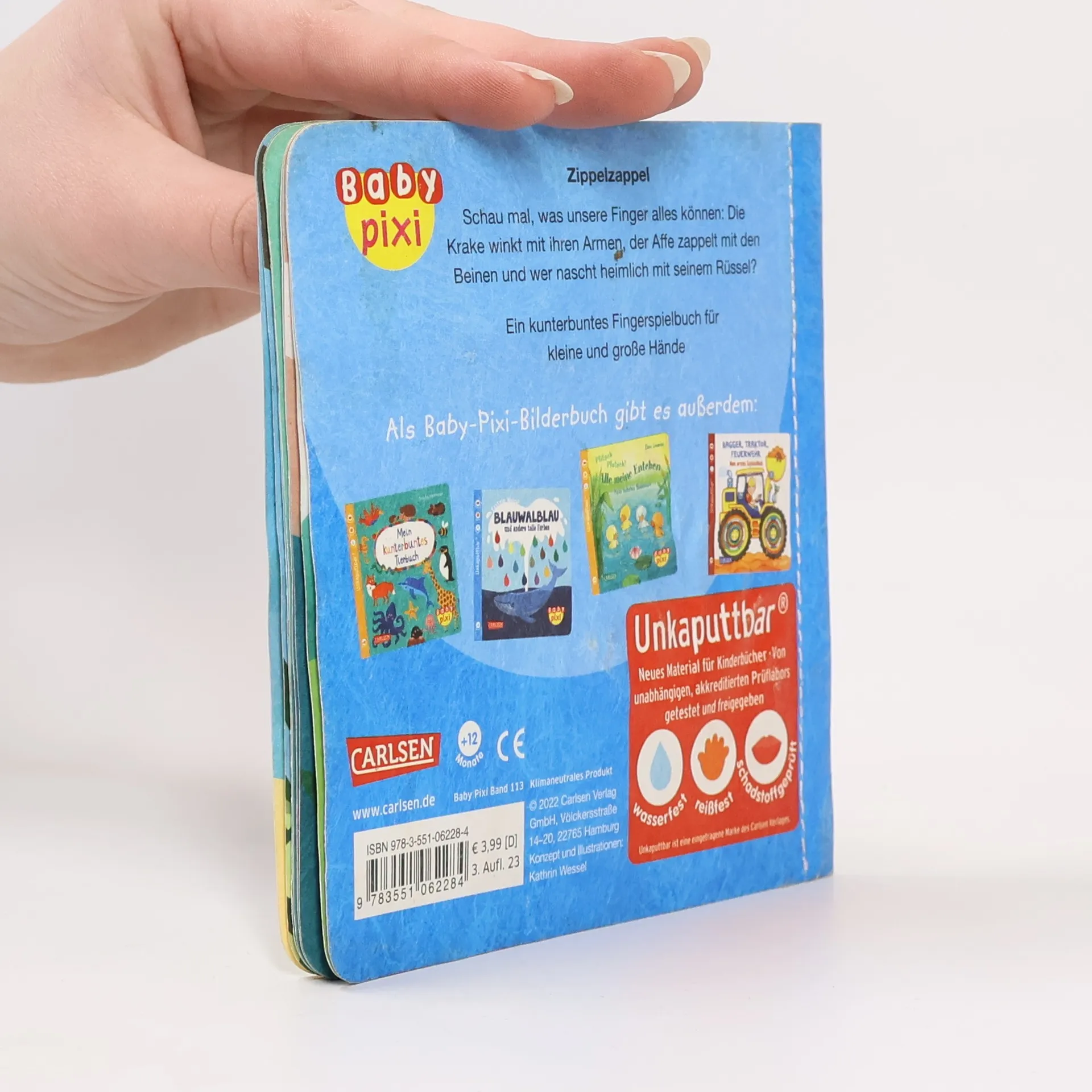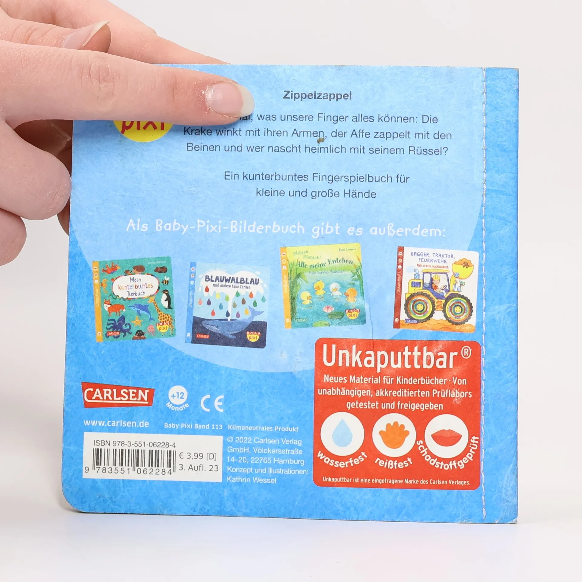 Schau mal, was unsere Finger alles können: Die Krake winkt mit ihren Armen, der kleine Affe zappelt mit den Beinen, und wer nascht heimlich Nüsse mit seinem langen Rüssel? Ein kunterbuntes Fingerspielbuch für kleine und große Hände. Baby Pixi für die ganz Kleinen: Das innovative Material ist wasserfest, schadstoffgeprüft und reißfest. Baby Pixi – einfach unkaputtbar®!
