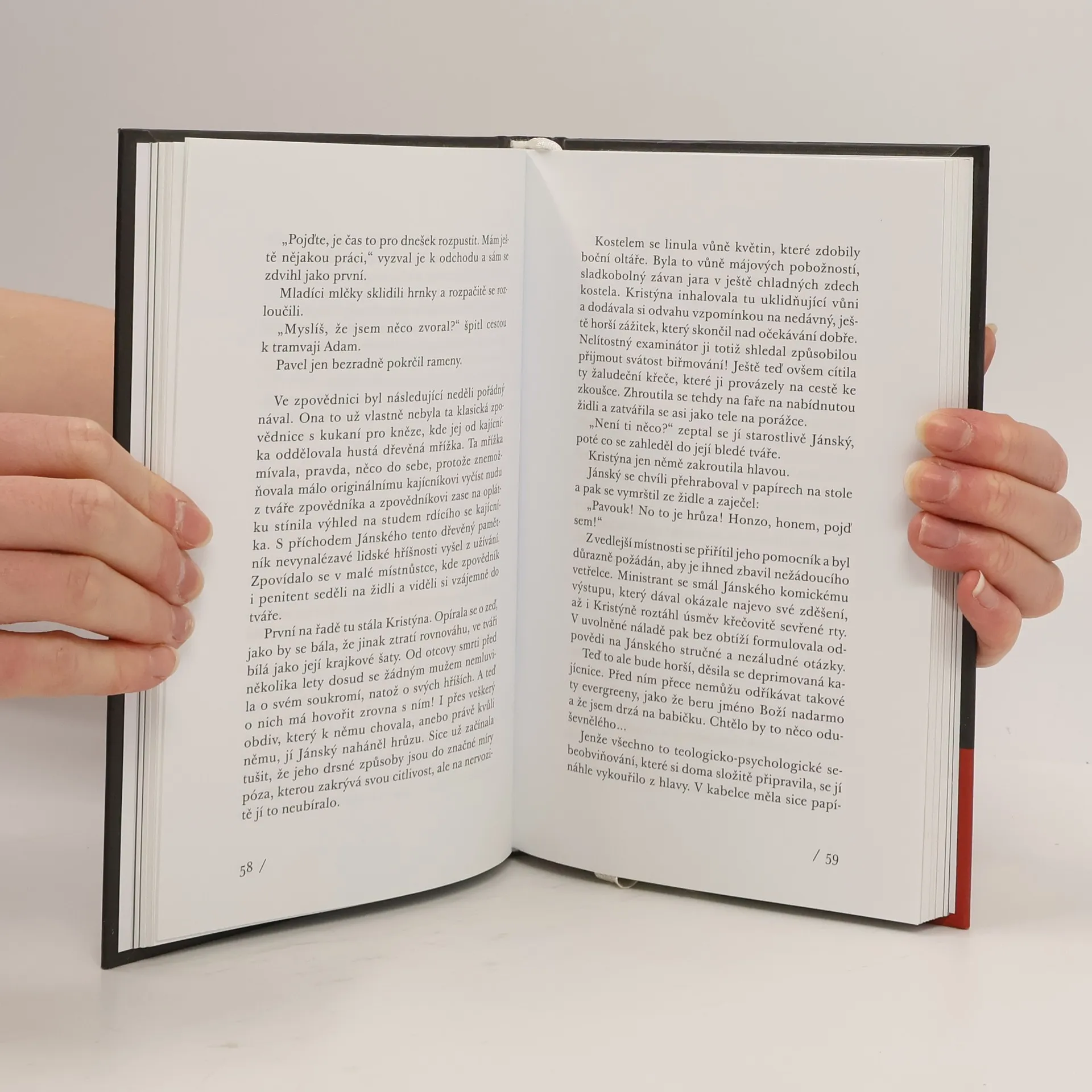 Novela o různých podobách strachu, odvahy, pýchy a pokory inspirovaná skutečným případem. Příběh charismatického kněze, donuceného během normalizace ke spolupráci s StB. Autorka se inspirovala skutečným případem kněze, který na jedné straně dokázal dodávat odvahu jedněm z hlavních "nepřátel režimu" - křesťanům, na straně druhé však nenašel odvahu vzepřít se a odmítnout spolupráci s StB. Nečernobílý příběh prochází zákruty osudů, které semlelo soukolí totalitní moci, a ukazuje, jakým situacím byli lidé vystaveni a jak nesnadné bylo se jednoznačně rozhodnout. Hrdina, který se přátelí s mnoha disidenty a po léta pozdní normalizace je pro mnoho zejména mladých katolíků morální i duchovní oporou, bojuje svůj tajný vnitřní boj, kdy ví, že nedokázal "ďáblovi říct ne", ale stále se snaží ďábla obehrát. Přichází listopadový převrat 1989, který přináší svobodu, ale také černobílé třídění lidí a Cibulkovy seznamy spolupracovníků StB... a v této chvíli hrdina osvědčuje odvahu, dokáže se ke své spolupráci veřejně přiznat, učinit pokání a přijmout důsledky. Katarze však nepřichází... Autorka v textu použila pasáže z proslulých homilií pátera Kánského a fotografie pořízené StB při jeho sledování.