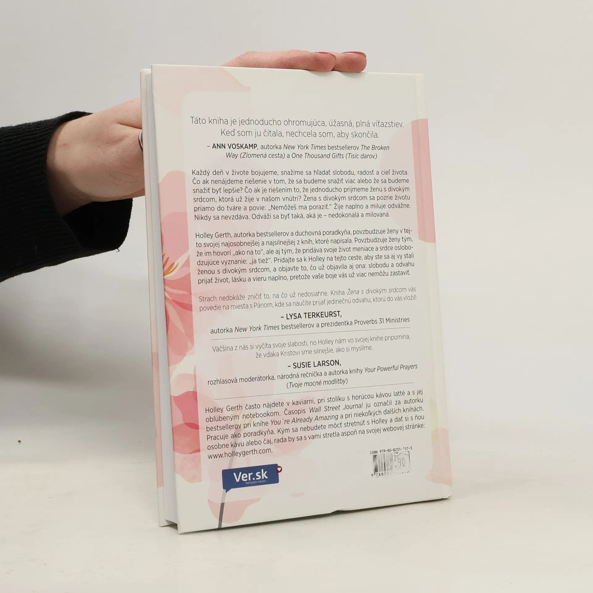 Každý deň bojujeme za slobodu, radosť a cieľ života. Čo ak riešením nie je snažiť sa viac, ale prijať ženu s divokým srdcom, ktorá už žije v nás? Táto žena sa postaví životu a povie: „Nemôžeš ma poraziť.“ Žije naplno, miluje odvážne a nikdy sa nevzdáva. Holley Gerth, autorka bestsellerov a duchovná poradkyňa, povzbudzuje ženy vo svojej najosobnejšej knihe. Hovorí im, ako na to, a zdieľa svoje život meniace vyznanie: „ja tiež“. Pridajte sa k nej na ceste k tomu, aby ste sa stali ženou s divokým srdcom, a objavte slobodu a odvahu prijať život, lásku a vieru naplno. Vaše boje vás už nemôžu zastaviť, pretože strach nedokáže zničiť to, na čo už nedosiahne. Kniha vás povedie na miesta s Pánom, kde sa naučíte prijať jedinečnú odvahu, ktorú do vás vložil. Holley nám pripomína, že vďaka Kristovi sme silnejšie, ako si myslíme. Táto kniha je ohromujúca a plná víťazstiev. Holley Gerth často píše pri horúcej káve a jej dielo je uznávané ako bestseller. Navštívte jej webovú stránku, kde sa môžete s ňou stretnúť aspoň virtuálne.