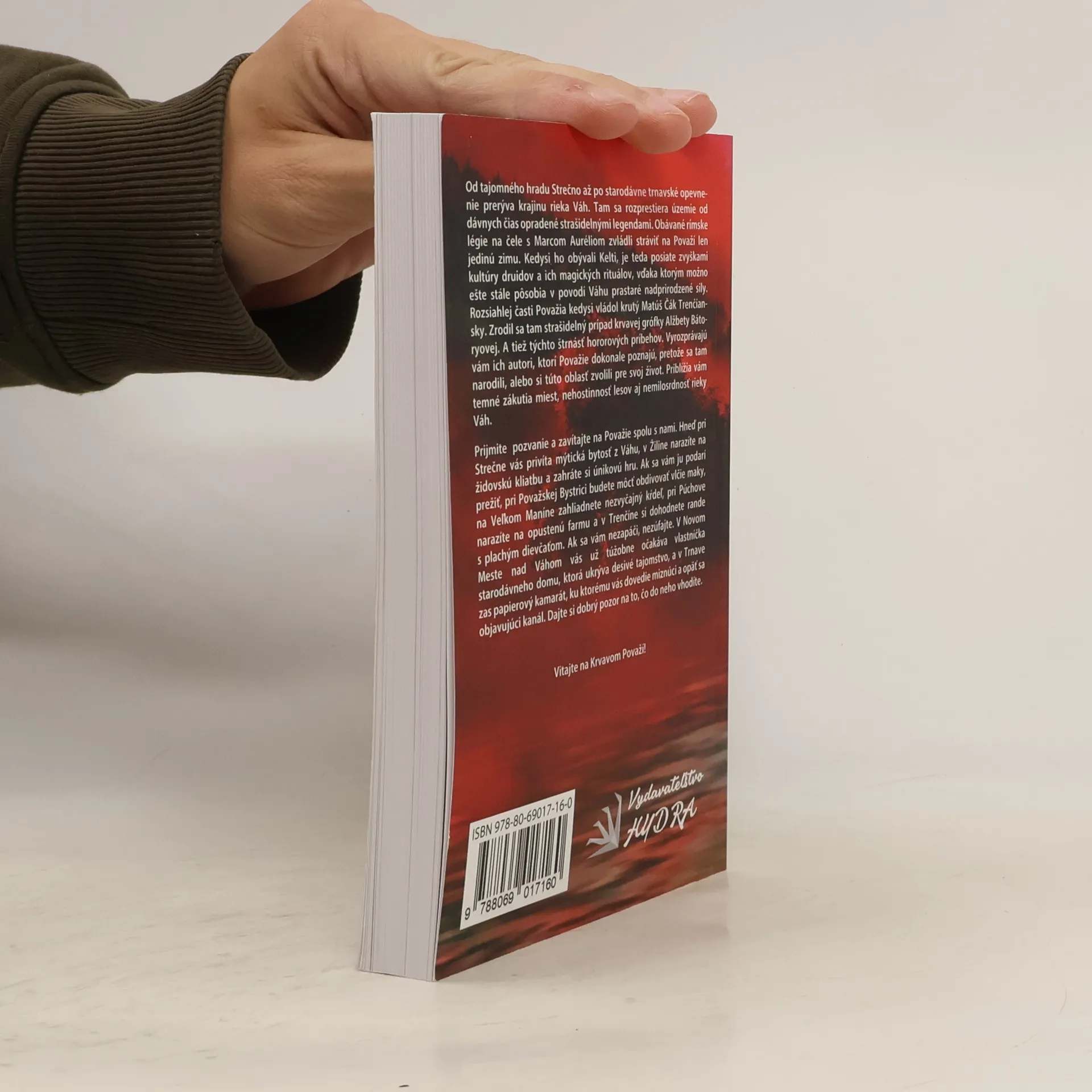 Od tajomného hradu Strečno až po starodávne trnavské opevnenie sa krajina prelína riekou Váh, ktorá je opradená strašidelnými legendami. Rímske légie na čele s Marcom Auréliom tu prežili len jednu zimu, a kedysi ho obývali Kelti, ktorých kultúra druidov zanechala stopy v magických rituáloch. Považie kedysi ovládal krutý Matúš Čák Trenčiansky a zrodil sa tu aj strašidelný prípad krvavej grófky Alžbety Bátoryovej. Príbehy, ktoré vám autori prerozprávajú, sú zasadené do temných zákutí miest, nehostinných lesov a nemilosrdnej rieky Váh. Pozývame vás na cestu po Považí, kde na vás pri Strečne čaká mýtická bytosť, v Žiline objavíte židovskú kliatbu a zahráte si únikovú hru. Ak prežijete, pri Považskej Bystrici si obdivujete vlčie maky, na Veľkom Maníne uvidíte nezvyčajný kŕdeľ, a v Trenčíne sa dohodnete na rande s plachým dievčaťom. V Novom Meste nad Váhom vás čaká vlastníčka starodávneho domu s desivým tajomstvom, a v Trnave vás zavedie miznúci kanál k papierovému kamarátovi. Vitajte na Krvavom Považí!