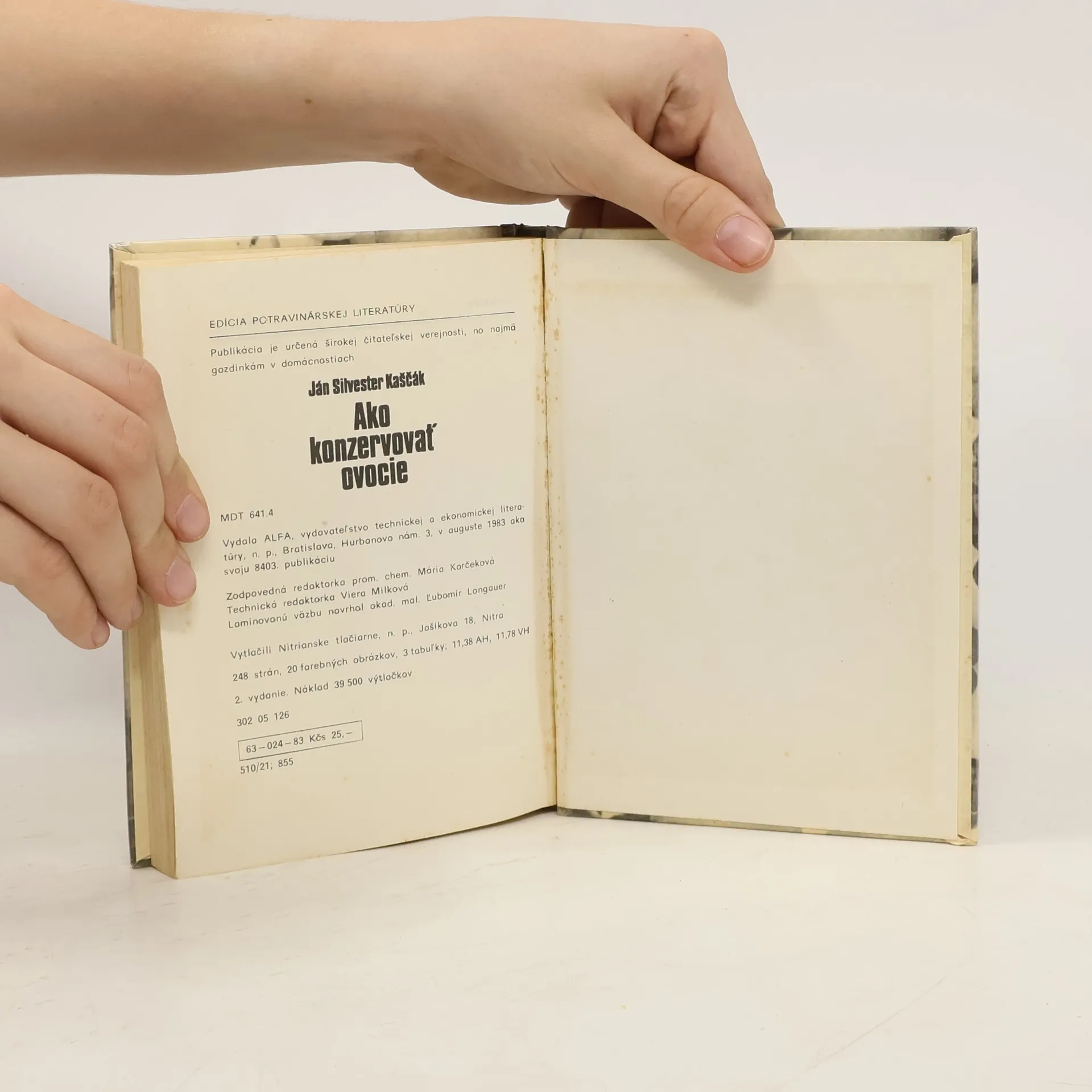 Príručka podáva základy konzervovania ovocia (kompóty, nátierky, džemy, mušty, sirupy) a pomocné látky, obaly aj mrazenie a sušenie ovocia a pod... 248 strán, 20 farebných obrázkov, 3 tabuľky, tvrdá väzba, malý formát