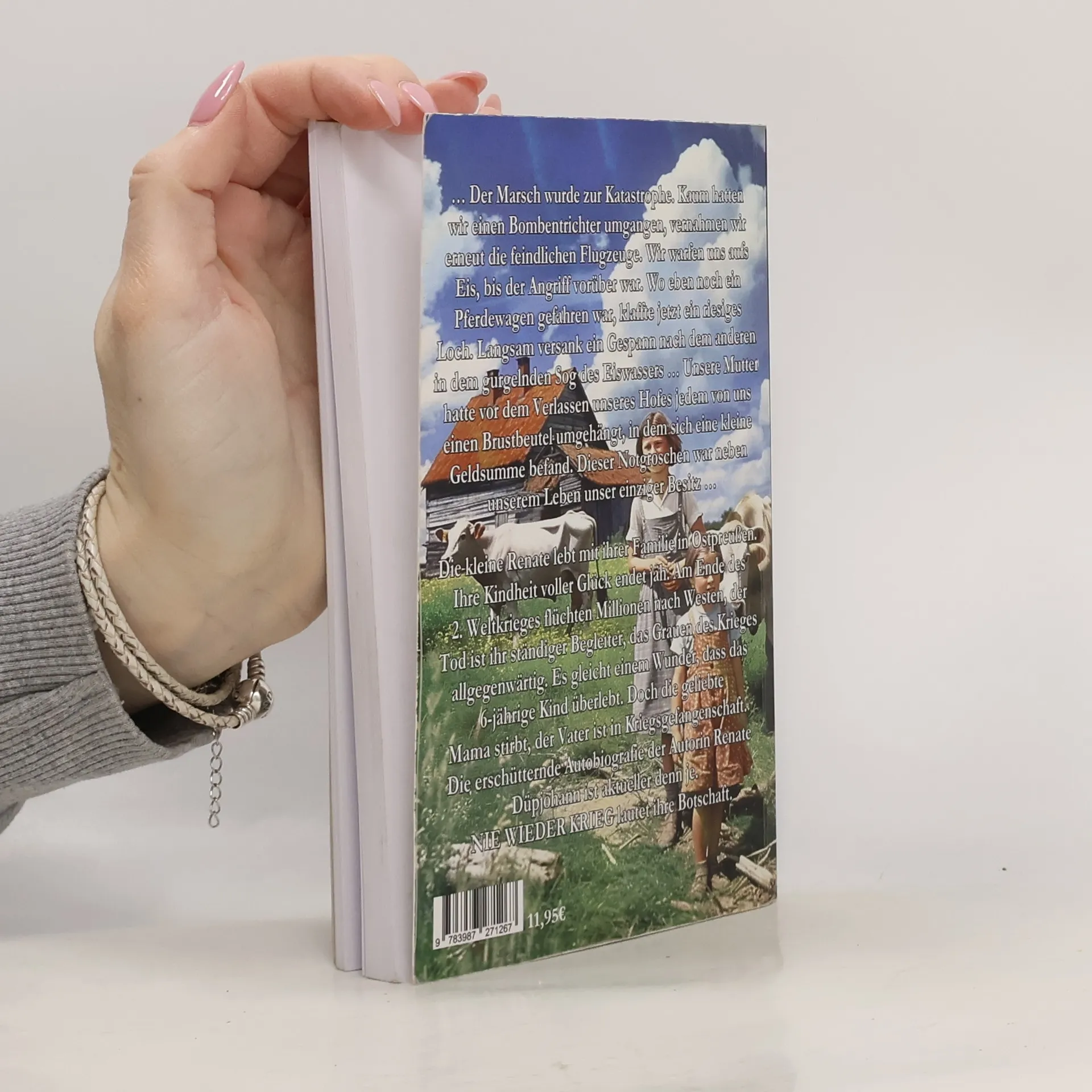 … Der Marsch wurde zur Katastrophe. Kaum hatten wir einen Bombentrichter umgangen, vernahmen wir erneut die feindlichen Flugzeuge. Wir warfen uns aufs Eis, bis der Angriff vorüber war. Wo eben noch ein Pferdewagen gefahren war, klaffte jetzt ein riesiges Loch. Langsam versank ein Gespann nach dem anderen in dem gurgelnden Sog des Eiswassers… Unsere Mutter hatte vor dem Verlassen unseres Hofes jedem von uns einen Brustbeutel umgehängt, in dem sich eine kleine Geldsumme befand. Dieser Notgroschen war neben unserem Leben unser einziger Besitz… Die kleine Renate lebt mit ihrer Familie in Ostpreußen. Ihre Kindheit voller Glück endet jäh. Am Ende des 2. Weltkrieges flüchten Millionen nach Westen, der Tod ist ihr ständiger Begleiter, das Grauen des Krieges allgegenwärtig. Es gleicht einem Wunder, dass das 6-jährige Kind überlebt. Doch die geliebte Mama stirbt, der Vater ist in Kriegsgefangenschaft. Die erschütternde Autobiografie der Autorin Renate Düpjohann ist aktueller denn je. NIE WIEDER KRIEG lautet ihre Botschaft.