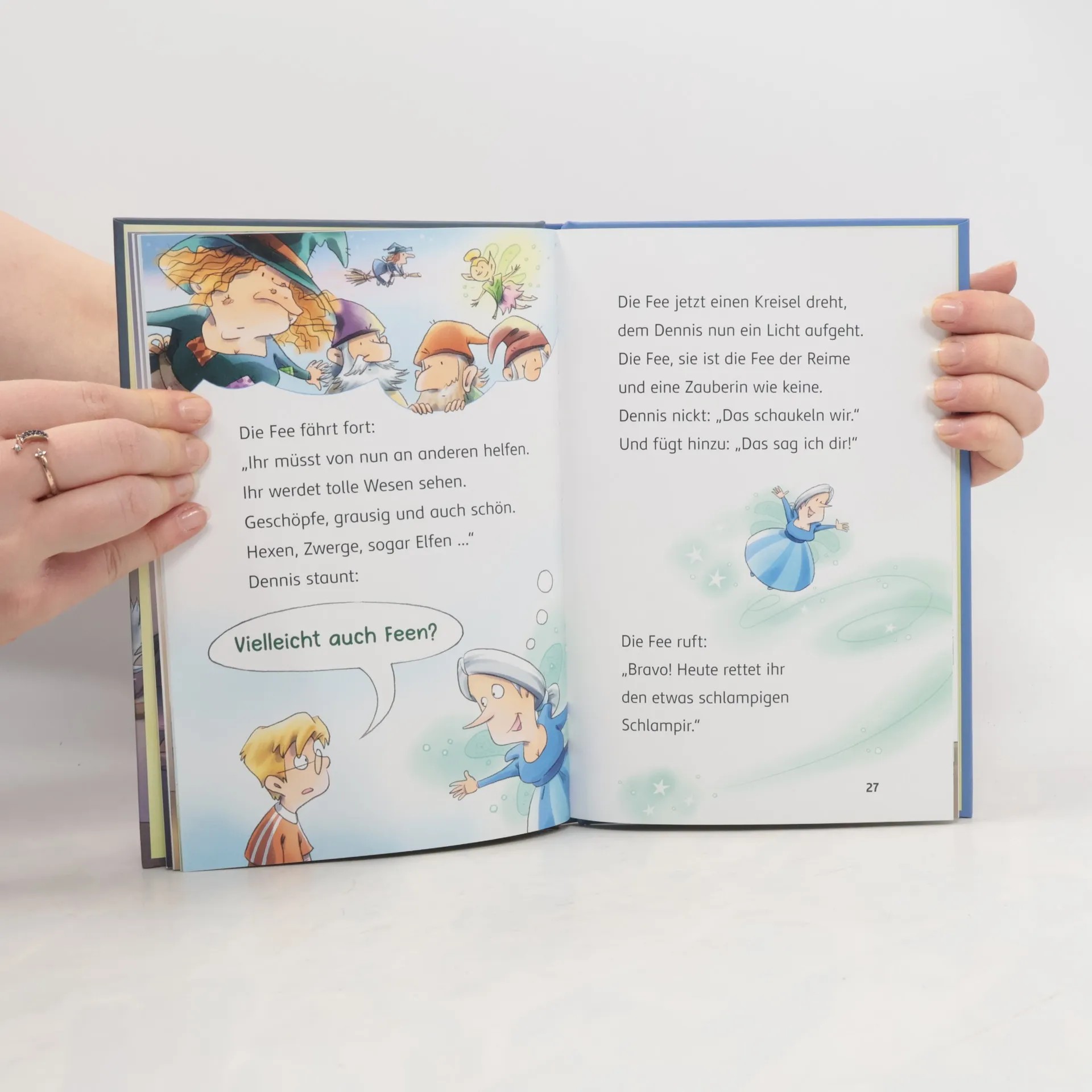 Magischer Reimspaß für Leseanfänger*innen ab 7 Jahren! Dennis schleicht zum Speicher rauf - SCHNAUF! Er wird von einer Truhe wie magisch angezogen - UNGELOGEN! In der Truhe ... ein altes Buch! Ein böser FLUCH? Aus dem Buch entspringt Reimhart, der Reimwolf. Er ist eigentlich ein Werwolf, der nur verstehen kann, wenn man in Reimen spricht. Eine knorrige Reimfee schickt die beiden auf eine geheime Mission. Zusammen mit Käthe Trompete müssen sie weiteren buchgebundenen Fabelwesen helfen: Zuerst dem besonders schusseligen Schlampir, der in seiner Ekelgruft sein Gebiss verloren hat ... Komm mit auf ein fantasisches Reim-Abenteuer und lass dich verzaubern! Lustige Geschichte für Erstleserinnen und Leseanfänger ab 7 Jahren Kreativer Lesespaß durch viele witzigen Reime Aufgelockertes Schriftbild erleichtert den Einstieg ins selbständige Lesen Mit großer Schrift, Sprechblasen und schaurig-schönen Bildern auf jeder Seite Leserätseln am Ende der Geschichte und zusätzlichem Lesequiz auf Antolin Weitere Bände dieser Kinderbuchreihe: Band 1: Reimhart Reimwolf – Dicke Luft in der Schlampir-Gruft Band 2: Reimhart Reimwolf – Mächtig Wind ums Müffel-Kind