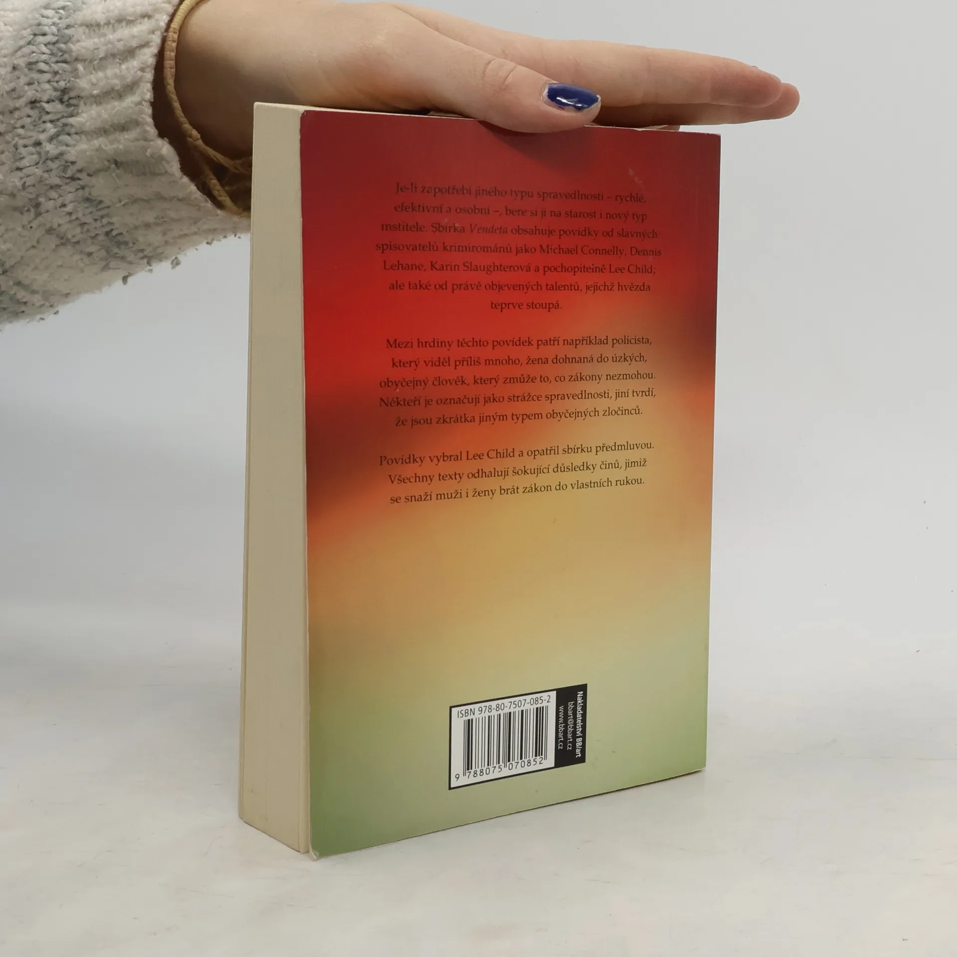 Je-li zapotřebí jiného typu spravedlnosti – rychlé, efektivní a osobní –, bere si ji na starost i nový typ mstitele. Sbírka Vendeta obsahuje nové povídky od slavných spisovatelů krimirománů jako Michael Connelly, Dennis Lehane, Karin Slaughterová a pochopitelně Lee Child; ale také od právě objevených talentů, jejichž hvězda teprve stoupá. Mezi hrdiny těchto povídek patří například policista, který viděl příliš mnoho, žena dohnaná do úzkých, obyčejný člověk, který zmůže to, co zákony nezmohou. Někteří je označují jako strážce spravedlnosti, jiní tvrdí, že jsou zkrátka jiným typem obyčejných zločinců. Povídky vybral Lee Child a opatřil sbírku předmluvou. Všechny texty odhalují šokující důsledky činů, jimiž se snaží muži i ženy brát zákon do vlastních rukou. 2. vydání.