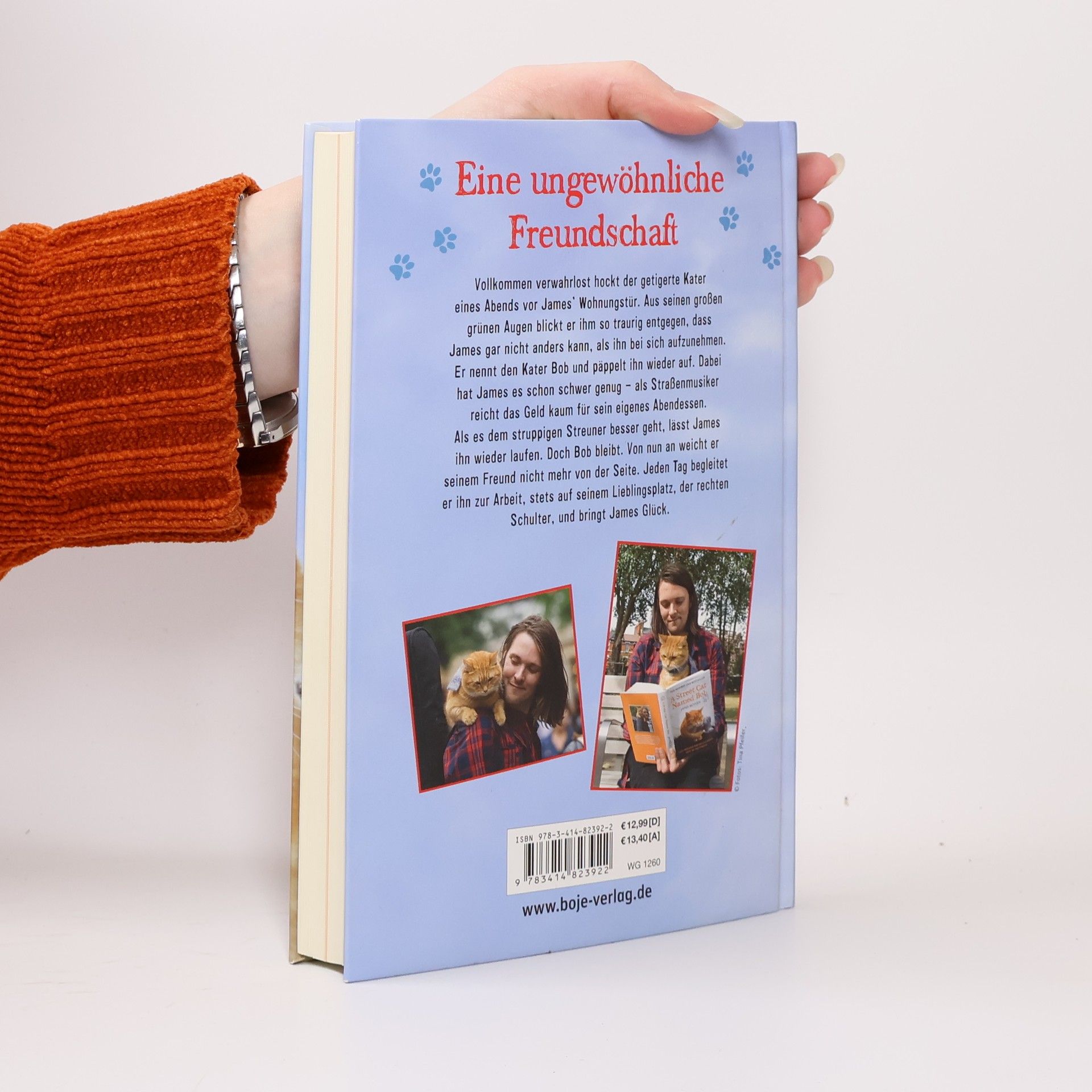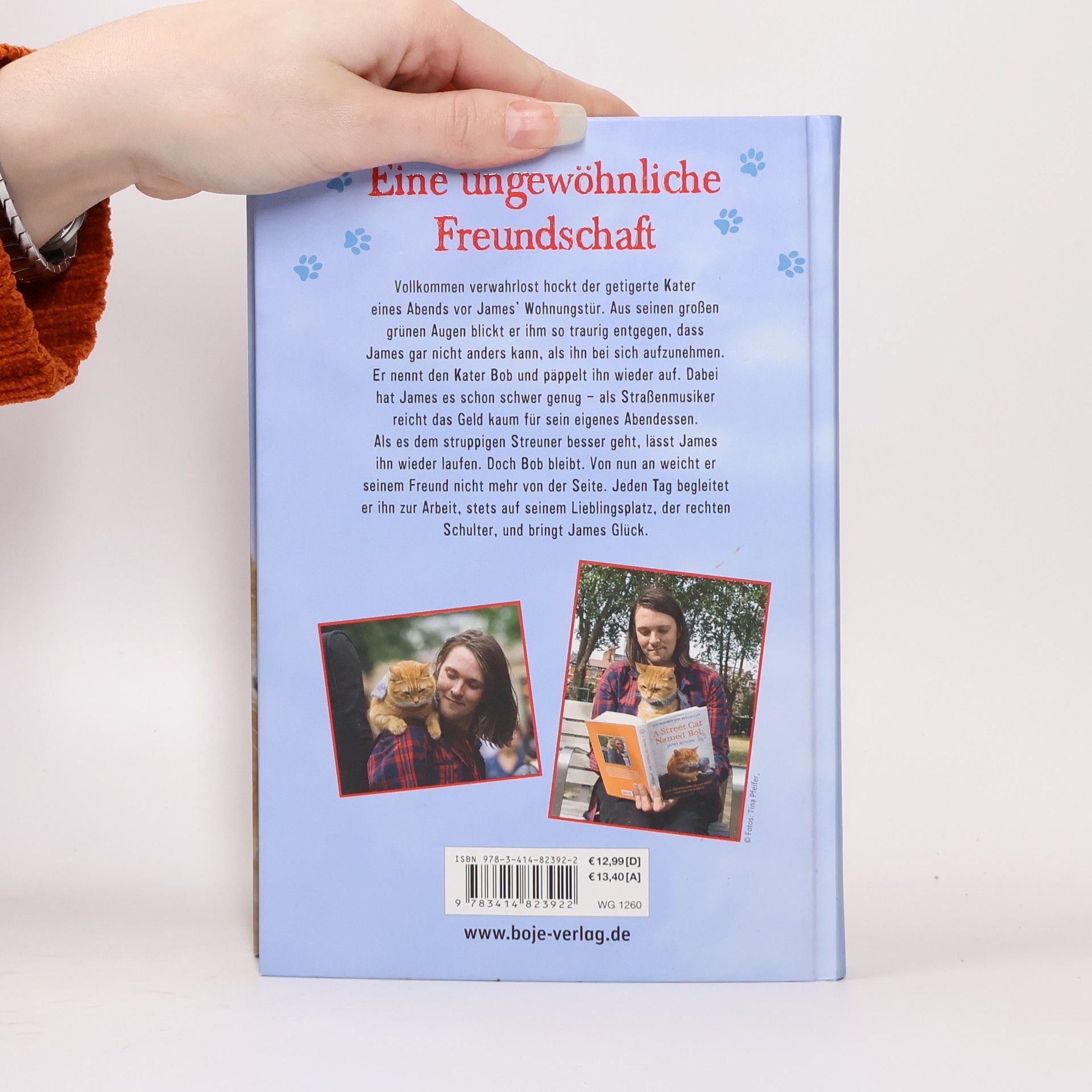 Speziell für junge Leser erzählt: Die Geschichte von Bob, dem Streuner, und seinem Freund James Vollkommen verwahrlost hockt der getigerte Kater eines Abends vor James´ Wohnungstür. Aus seinen großen grünen Augen blickt er ihm so traurig entgegen, dass James gar nicht anders kann, als ihn bei sich aufzunehmen. Er nennt den Kater Bob und päppelt ihn wieder auf. Dabei hat James es schon schwer genug - als Straßenmusiker reicht das Geld kaum für sein eigenes Abendessen. Als es dem struppigen Streuner besser geht, lässt James ihn wieder laufen. Doch Bob bleibt. Von nun an weicht er seinem Freund nicht mehr von der Seite. Jeden Tag begleitet er ihn zur Arbeit, stets auf seinem Lieblingsplatz, der rechten Schulter, und bringt James Glück. James Bowens Kult-Bestseller über die ungewöhnliche Freundschaft zu seinem Kater Bob - die Buchversion für Jugendliche! Mit Fotos von Bob und James
