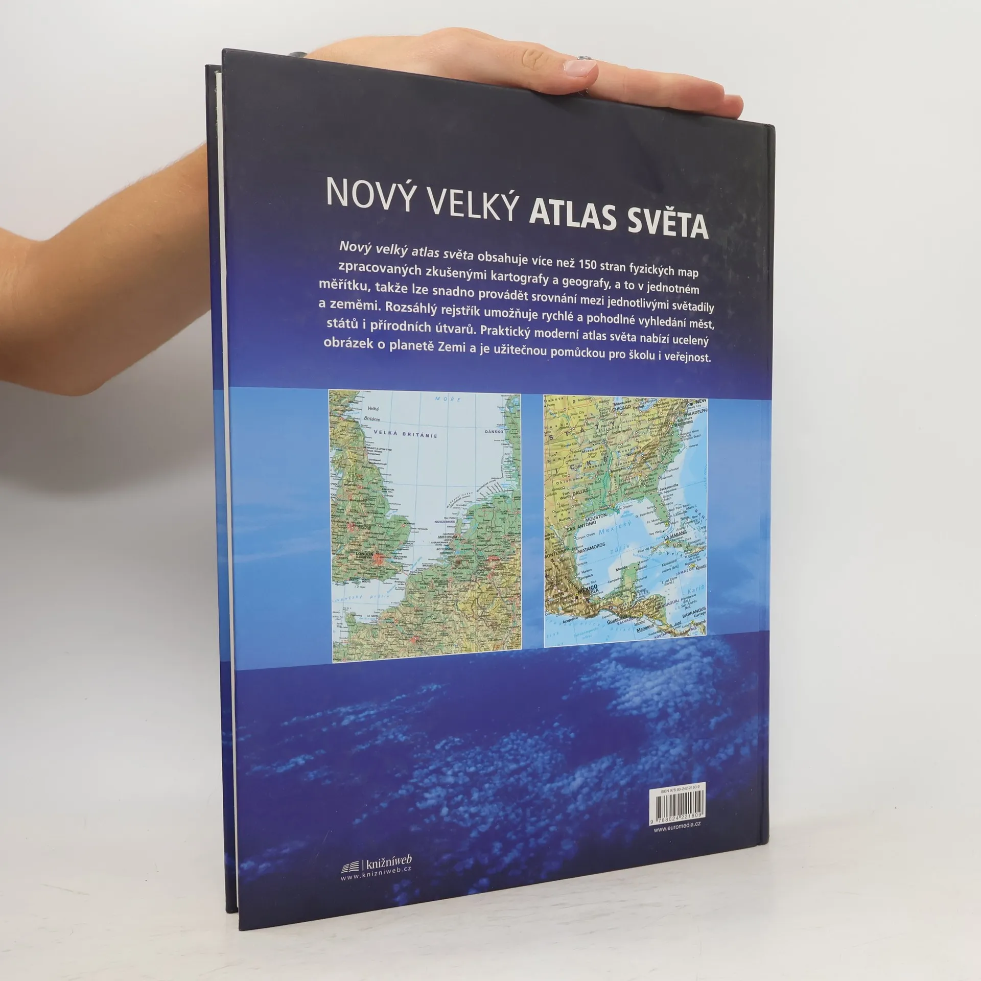 Nový velký atlas světa zahrnuje více než 150 stran fyzických map, zpracovaných zkušenými kartografy a geografy, a to v jednotném měřítku, takže lze snadno provádět srovnání mezi jednotlivými světadíly a zeměmi. Rozsáhlý rejstřík umožňuje rychlé a pohodlné vyhledání měst, států i přírodních útvarů. Praktický, moderní atlas nabízí ucelený obrázek o planetě Zemi a je užitečnou pomůckou pro školu i veřejnost. Formát: 268 × 366 mm, hmotnost: 2030 g. Původní cena: 599 Kč.... celý text