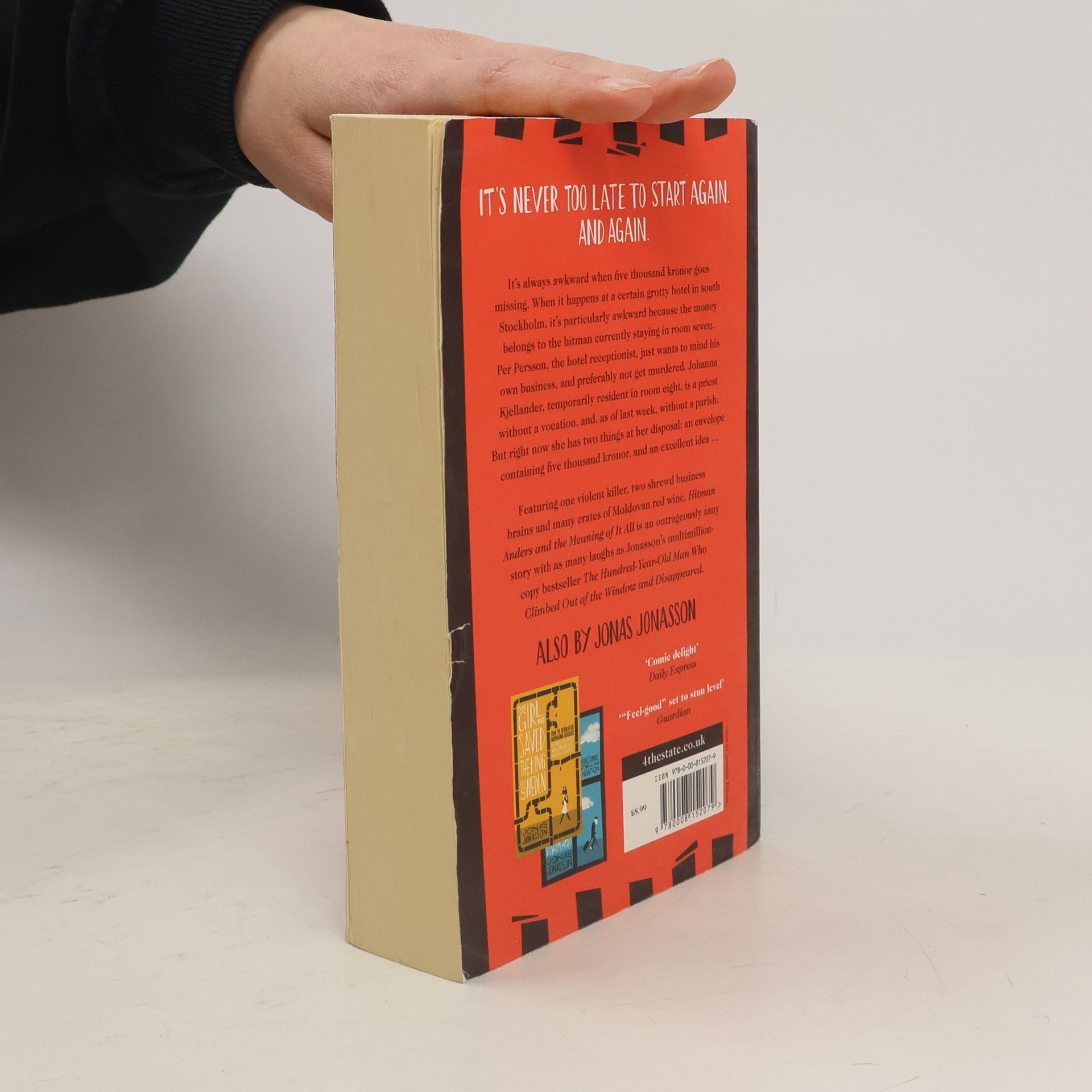 A madcap new novel from the author of The Hundred-Year-Old Man Who Climbed Out of the Window and The Girl Who Saved the King of Sweden IT'S NEVER TOO LATE TO START AGAIN. AND AGAIN. It's always awkward when five thousand kronor goes missing. When it happens at a certain grotty hotel in south Stockholm, it's particularly awkward because the money belongs to the hitman currently staying in room seven. Per Persson, the hotel receptionist, just wants to mind his own business, and preferably not get murdered. Johanna Kjellander, temporarily resident in room eight, is a priest without a vocation, and, as of last week, without a parish. But right now she has two things at her disposal: an envelope containing five thousand kronor, and an excellent idea . . . Featuring one violent killer, two shrewd business brains and many crates of Moldovan red wine, Hitman Anders and the Meaning of It All is an outrageously zany story with as many laughs as Jonasson's multimillion-copy bestseller The Hundred-Year-Old Man Who Climbed Out of the Window and Disappeared.