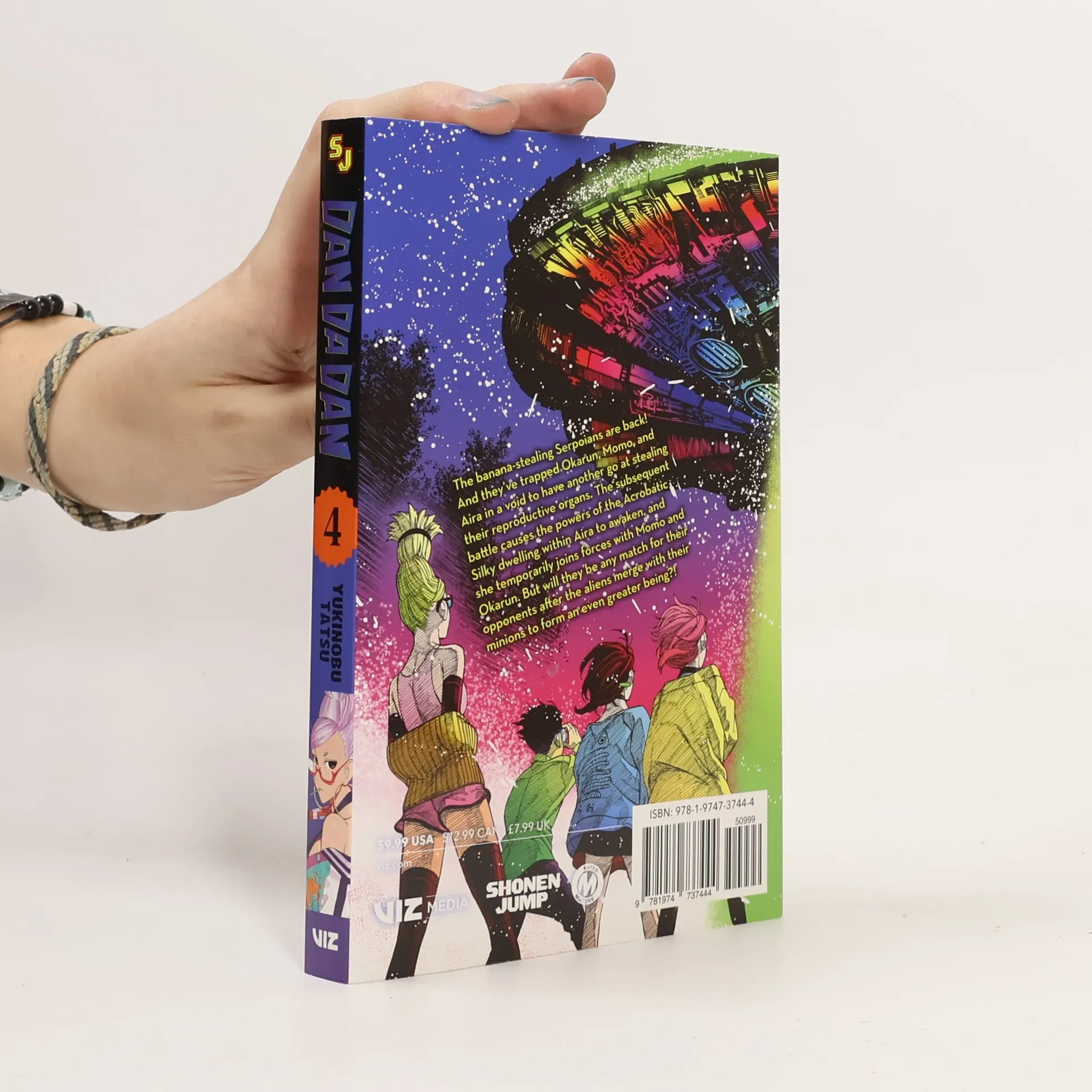 A nerd must fight powerful spirits and aliens all vying for the secret power of his family jewel, so who better to fight alongside him than his high school crush and a spirit granny?!Momo Ayase and Okarun are on opposite sides of the paranormal spectrum regarding what they'll believe in and what they won't. Their quest to prove each other wrong leads them down a path of secret crushes and paranormal battles they'll have to participate in to believe!The banana- stealing Serpoians are back! And they've trapped Okarun, Momo, and Aira in a void to have another go at stealing their reproductive organs. The subsequent battle causes the powers of the Acrobatic Silky dwelling within Aira to awaken, and she temporarily joins forces with Momo and Okarun. But will they be any match for their opponents after the aliens merge with their minions to form an even greater being?!