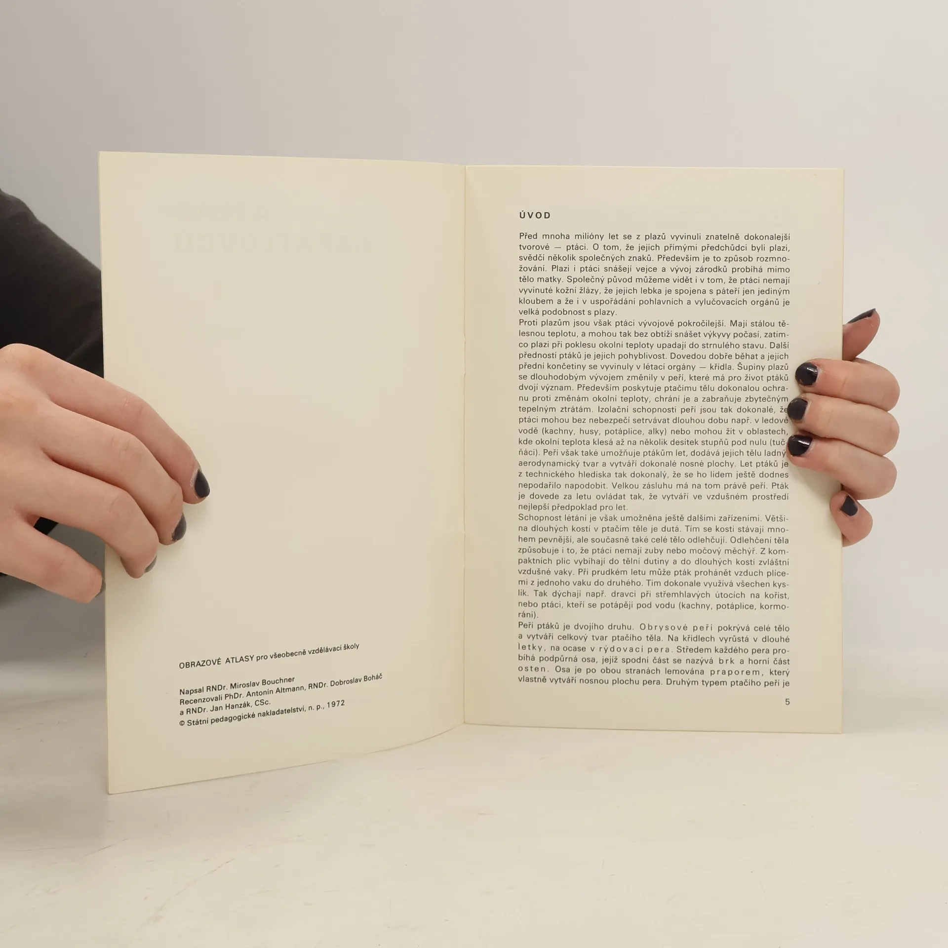 Atlas obsahuje barevné fotografie ptáků a jejich zoologický popis, úvod shrnuje hlavní rysy vývoje, anatomie a životních zvyků ptáků.