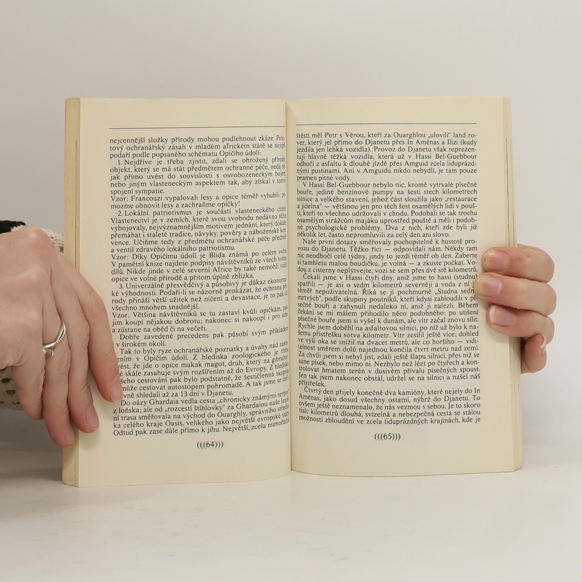Autor, mladý vědecký pracovník, podává ve své knize velice zasvěcený výklad o dnešní tváři Sahary. Zúčastnil se jako člen Svazu pro ochranu přírody a krajiny 6 expedic do Alžírska, poznal dobře zblízka nejrůznější kraje a lidi i typickou saharskou přírodu. Ze svých cest vytěžil i cenný fotografický materiál, který doložil v knize. Kniha je psaná živou, vtipnou, cestopisně reportážní formou. Autor se dívá na vše očima mladých lidí, zvídavých i kritických, neztrácející smysl pro humor ani v zapeklitých situacích, do kterých se v saharských pustinách nejednou celá výprava dostala.