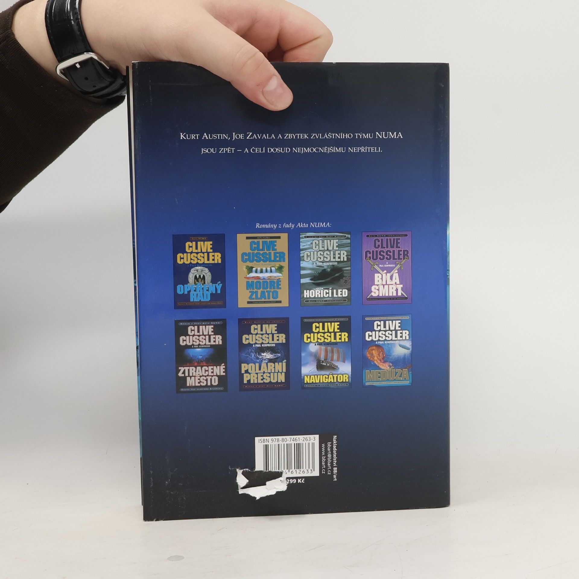Japonská nákladní loď se plaví východním Atlantikem nedaleko Azorských ostrovů – když tu náhle vzplane. Tlupa pirátů přispěchá, aby té katastrofy využila – ale jejich člun vyletí do vzduchu. Co se to proboha děje? Co to má společného s únosem špičkového vědce z ulice Ženevy? Se záhadným Rusem, který před šedesáti lety přeběhl na stranu nepřítele? S objevem neobyčejného podmořského pohřebiště lodí a letadel, kde vraky doslova pokrývají mořské dno? Zatímco Austin, Zaval a ostatní spěchají, aby to vyšetřili, jsou vtaženi do mimořádně ambiciózních plánů afrického diktátora, jenž si nechal postavit zbraň takřka bájné síly a chystá se podrobit si největší státy světa. A trest za odmítnutí? Zničení největších měst na světě. Počínaje Washingtonem…
