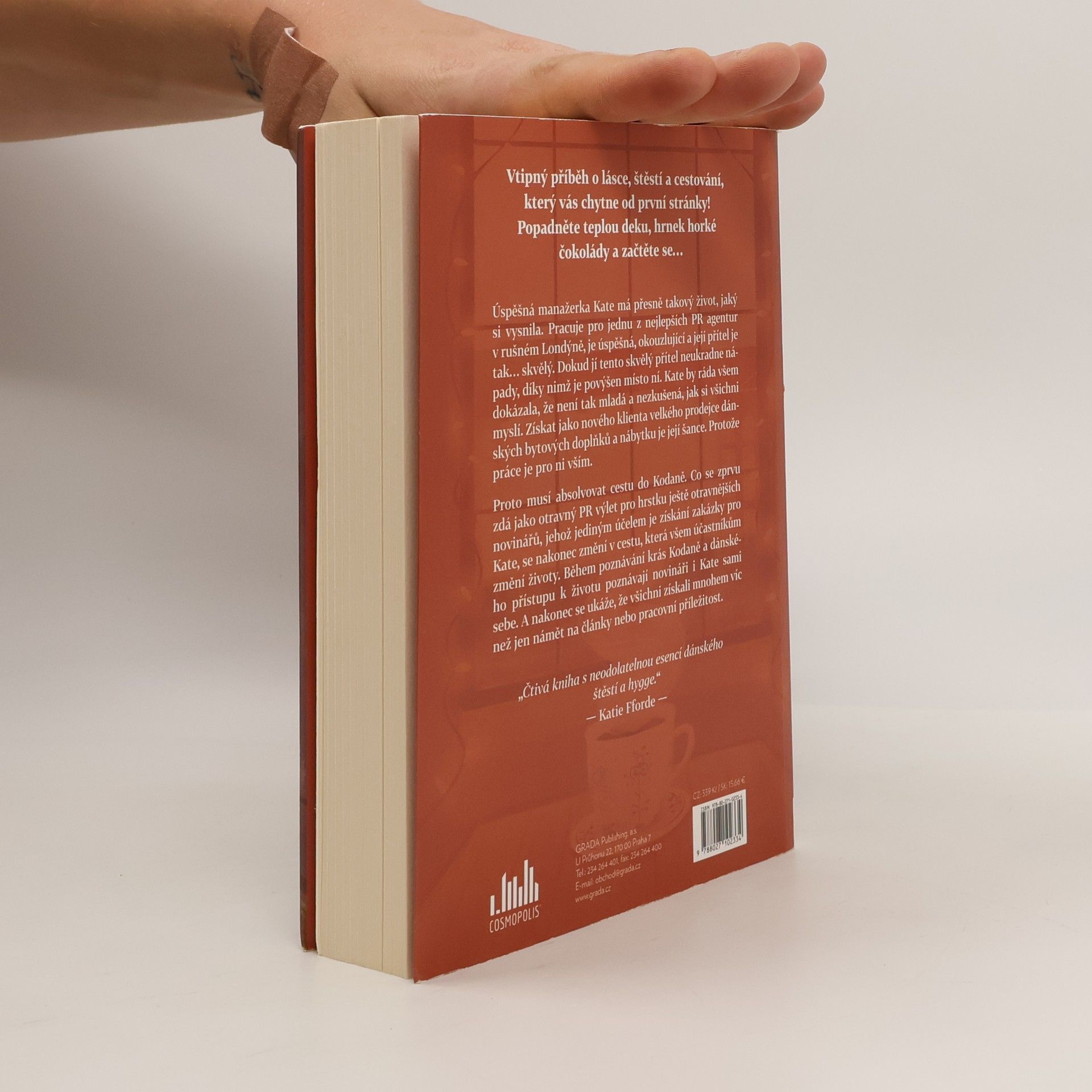 Vtipný příběh o lásce, štěstí a cestování, který vás chytne od první stránky! Popadněte teplou deku, hrnek horké čokolády a začtěte se…Úspěšná manažerka Kate má přesně takový život, jaký si vysnila. Pracuje pro jednu z nejlepších PR agentur v rušném Londýně, je úspěšná, okouzlující a její přítel je tak… skvělý. Dokud jí tento skvělý přítel neukradne nápady, díky nimž je povýšen místo ní. Kate by ráda všem dokázala, že není tak mladá a nezkušená, jak si všichni myslí. Získat jako nového klienta velkého prodejce dánských bytových doplňků a nábytku je její šance. Protože práce je pro ni vším.Proto musí absolvovat cestu do Kodaně. Co se zprvu zdá jako otravný PR výlet pro hrstku ještě otravnějších novinářů, jehož jediným účelem je získání zakázky pro Kate, se nakonec změní v cestu, která všem účastníkům změní životy. Během poznávání krás Kodaně a dánského přístupu k životu poznávají novináři i Kate sami sebe. A nakonec se ukáže, že všichni získali mnohem víc než jen námět na články nebo pracovní příležitost.
