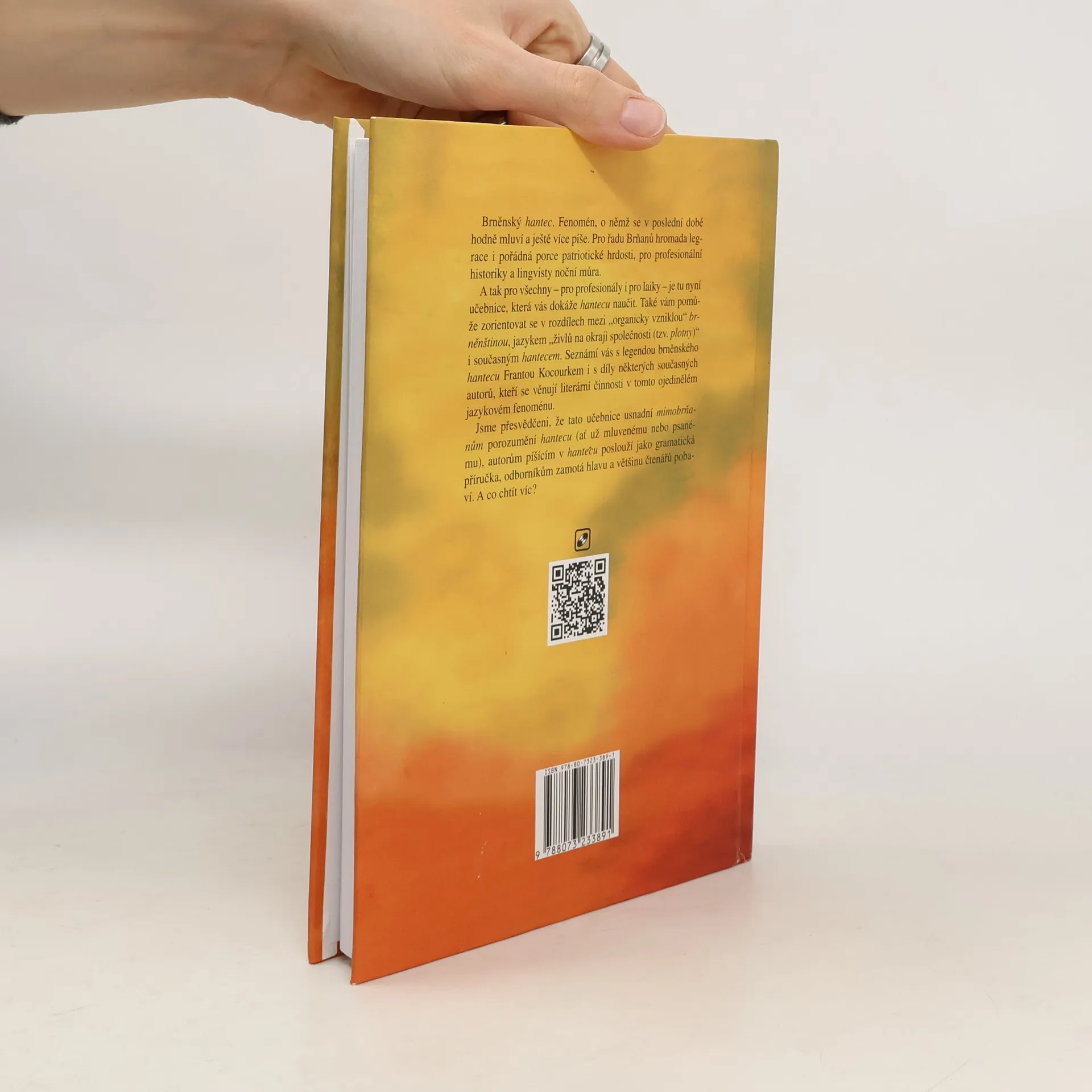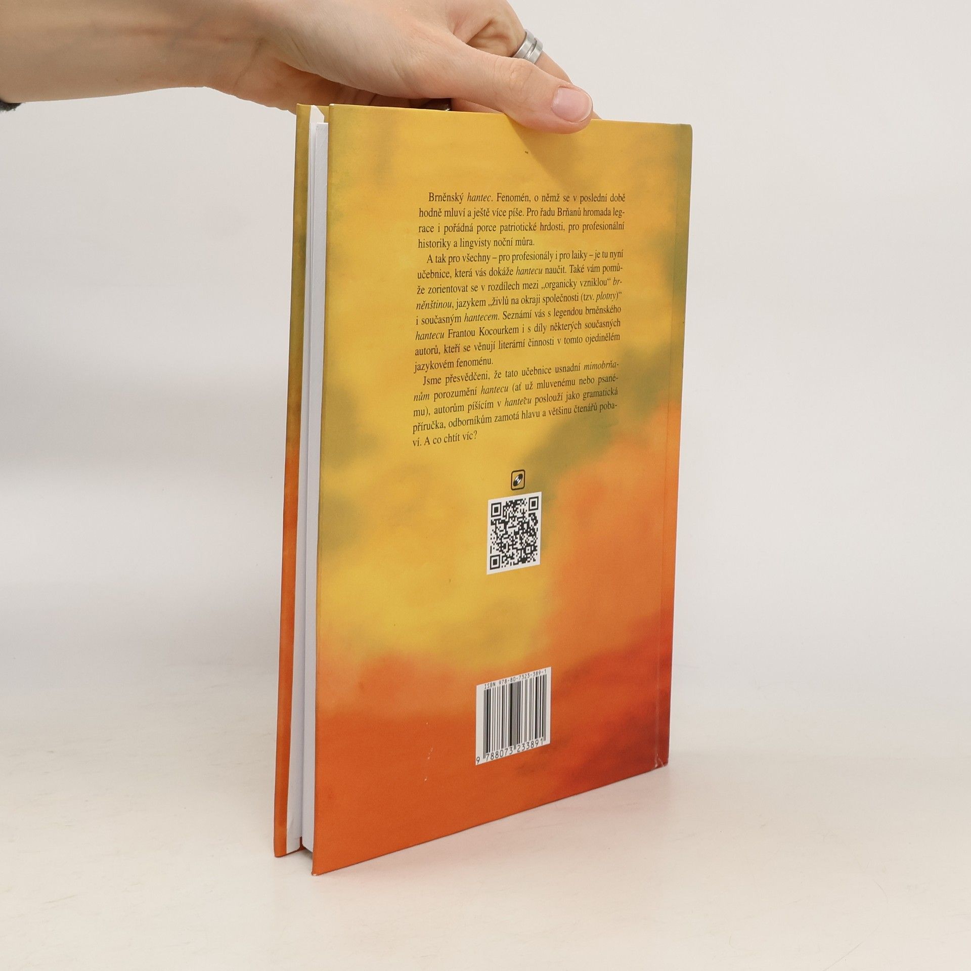 Pro profesionály i pro laiky – je tu nyní učebnice, která vás dokáže hantecu naučit. Také vám pomůže zorientovat se v rozdílech mezi „organicky vzniklou“ brněnštinou, jazykem „živlů na okraji společnosti (tzv. plotny)“ i současným hantecem. Seznámí vás s legendou brněnského hantecu Frantou Kocourkem i s díly některých současných autorů, kteří se věnují literární činnosti v tomto ojedinělém jazykovém fenoménu. Jsme přesvědčeni, že tato učebnice usnadní mimobrňanům porozumění hantecu (ať už mluvenému nebo psanému), autorům píšícím v hantecu poslouží jako gramatická příručka, odborníkům zamotá hlavu a většinu čtenářů pobaví. A co chtít víc?