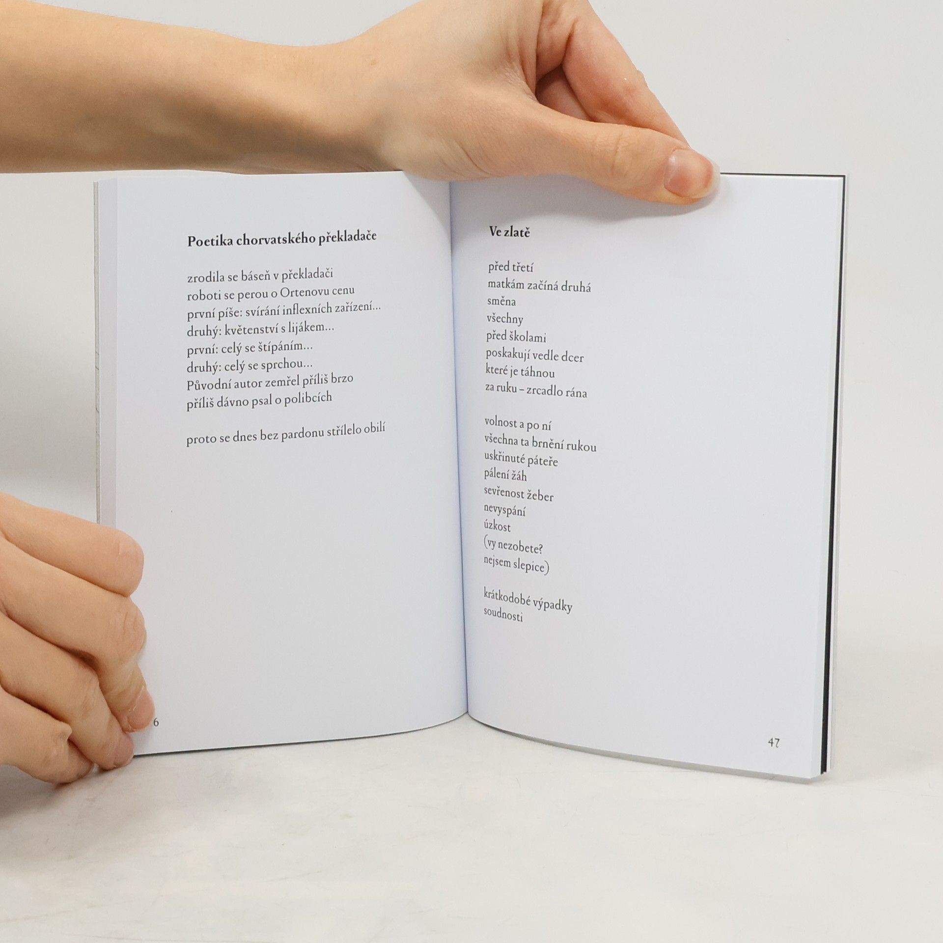 Po dvou vydaných sbírkách Oblásky (2008) a Intimyty (2011) se Tereza Ješátková vrací s poezií z let 2012-2023, pohrává si s hranicí mezi intimním a veřejným, mezi vyslovitelným a mlčením. Knihu doplňují minimalisticky dotvořené otisky prstů autorky a ilustrace její desetileté dcery. Veřejná sbírka si důvěru některých čtenářů získala již před svým vydáním, dostála totiž svému názvu a část peněz na její vydání byla vybrána od veřejnosti prostřednictvím crowdfundingového portálu Hithit.