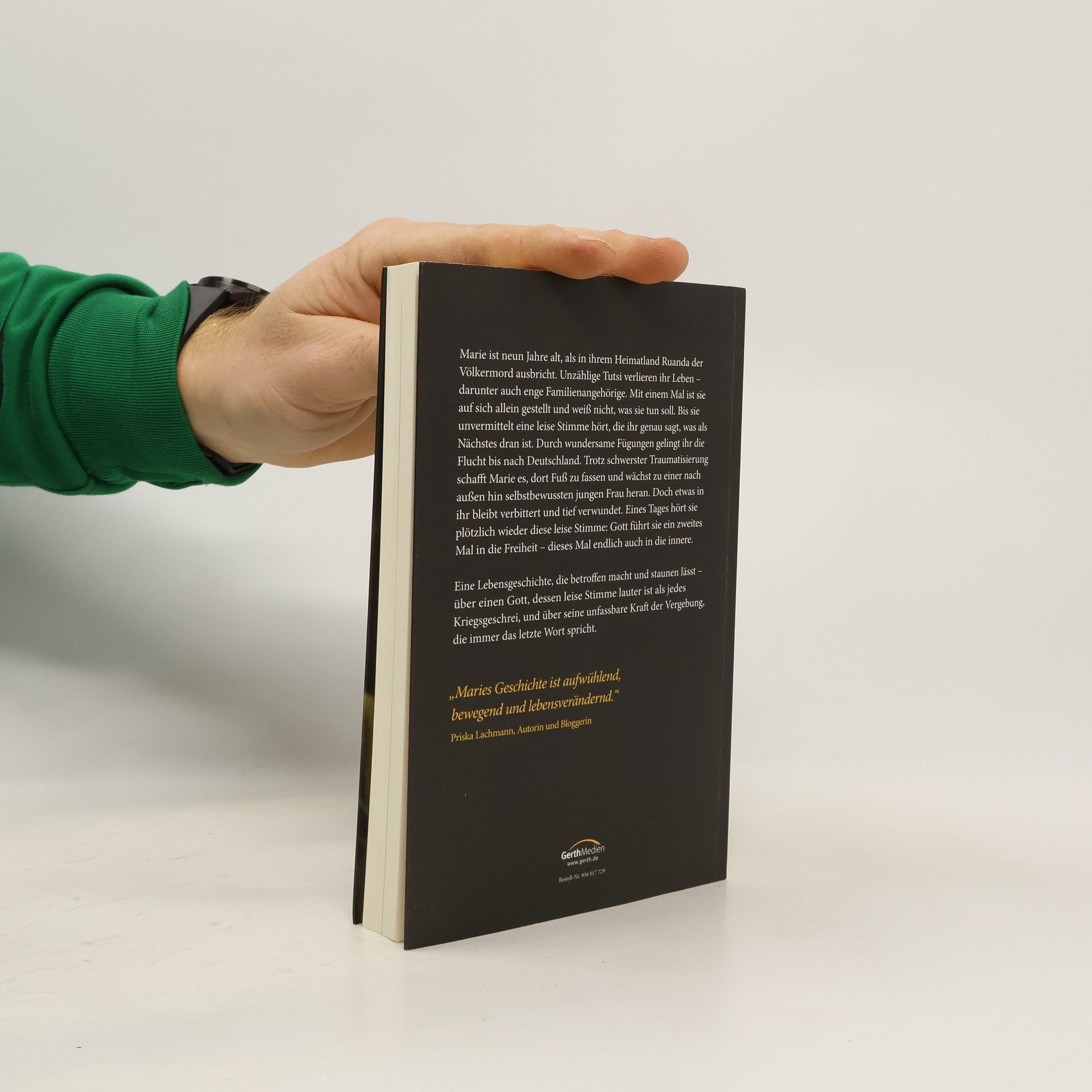 Marie ist neun Jahre alt, als in ihrem Heimatland Ruanda der Völkermord ausbricht. Unzählige Tutsi verlieren ihr Leben - darunter auch enge Familienangehörige. Mit einem Mal ist sie auf sich allein gestellt und weiß nicht, was sie tun soll. Bis sie unvermittelt eine leise Stimme hört, die ihr genau sagt, was als Nächstes dran ist. Durch wundersame Fügungen gelingt ihr die Flucht bis nach Deutschland. Trotz schwerster Traumatisierung schafft Marie es, dort Fuß zu fassen und wächst zu einer nach außen hin selbstbewussten jungen Frau heran. Doch etwas in ihr bleibt verbittert und tief verwundet. Eines Tages hört sie plötzlich wieder diese leise Stimme: Gott führt sie ein zweites Mal in die Freiheit - dieses Mal endlich auch in die innere.Eine Lebensgeschichte, die betroffen macht und staunen lässt - über einen Gott, dessen leise Stimme lauter ist als jedes Kriegsgeschrei, und über seine unfassbare Kraft der Vergebung, die immer das letzte Wort spricht.