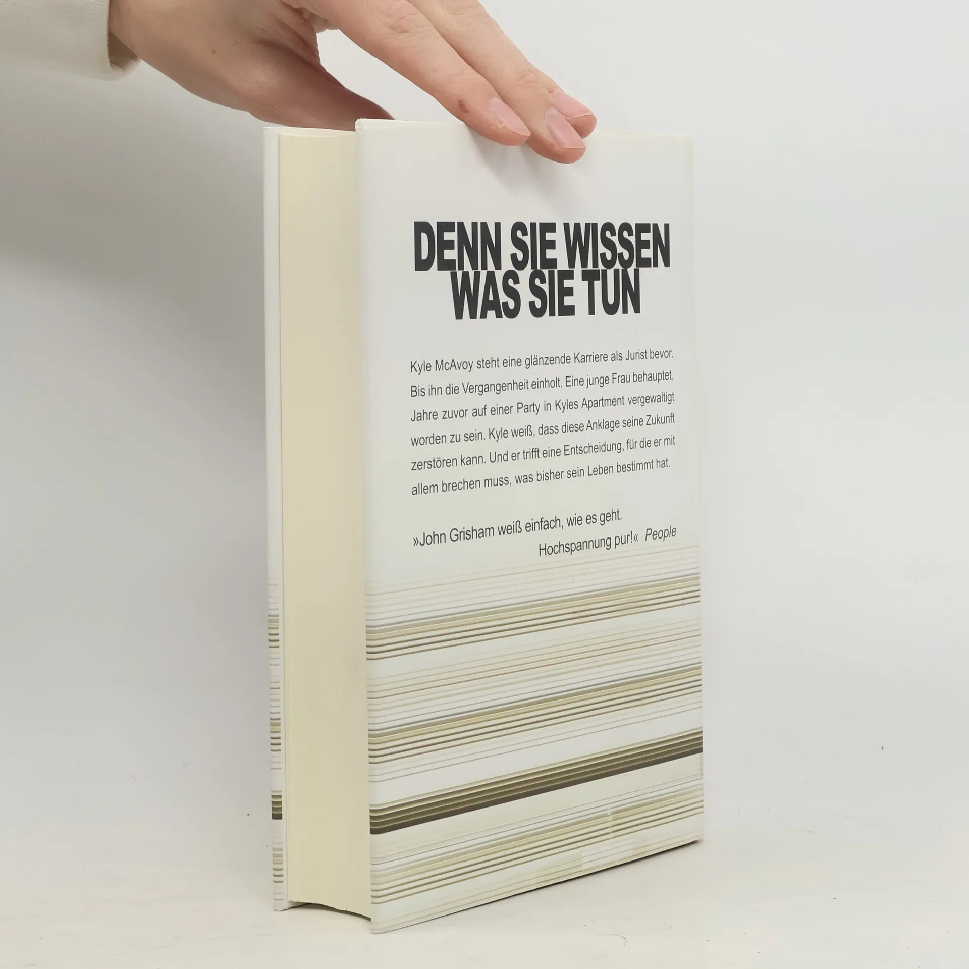 Denn sie wissen, was sie tun Kyle McAvoy steht eine glänzende Karriere als Jurist bevor. Bis ihn die Vergangenheit einholt. Eine Frau behauptet, Jahre zuvor auf einer Party in Kyles Wohnung vergewaltigt worden zu sein. Kyle weiß, dass diese Anklage seine Zukunft zerstören kann. Und er trifft eine Entscheidung, für die er mit allem brechen muss, was bisher sein Leben bestimmt hat. Der neue Grisham – ein Thriller um Macht, Korruption und eine Welt, der jegliche Moral abhandengekommen ist. Noch eine Prüfung, dann hat Kyle McAvoy sein Examen in der Tasche. Die Welt liegt dem brillanten Juristen zu Füßen, schon jetzt kann er sich vor Angeboten der renommiertesten Kanzleien kaum retten. Kyle aber geht es nicht um Macht und Profit, er möchte sein Wissen in den Dienst der Öffentlichkeit stellen. Doch bevor er über seine Zukunft entscheiden kann, droht ihm die Vergangenheit zum Verhängnis zu werden. Eine Episode aus Collegezeiten, die er nur zu gern vergessen hätte. Die falschen Leute erfahren davon und erpressen ihn. Kyle wird gezwungen, einen Job anzunehmen, für den sich jeder andere Jurist ein Bein ausreißen würde. Er wird Partner bei Scully & Pershing, der mächtigsten Anwaltskanzlei der Welt. Noch bevor Kyle in Erfahrung bringen kann, was seine Erpresser mit diesem Auftrag bezwecken, gerät seine Welt zum Alptraum, der ihn die Freiheit, wenn nicht das Leben kosten könnte.