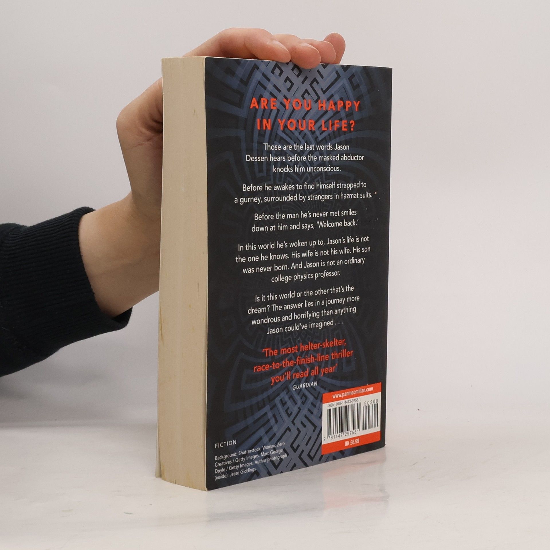 'Are you happy in your life?' Those are the last words Jason Dessen hears before the masked abductor knocks him unconscious. Before he awakes to find himself strapped to a gurney, surrounded by strangers in hazmat suits. Before the man he's never met smiles down at him and says, 'Welcome back.' In this world he's woken up to, Jason's life is not the one he knows. His wife is not his wife. His son was never born. And Jason is not an ordinary college physics professor, but a celebrated genius who has achieved something remarkable. Something impossible. Is it this world or the other that's the dream? And even if the home he remembers is real, how can Jason possibly make it back to the family he loves? The answers lie in a journey more wondrous and horrifying than anything he could've imagined - one that will force him to confront the darkest parts of himself even as he battles a terrifying, seemingly unbeatable foe -- back cover
