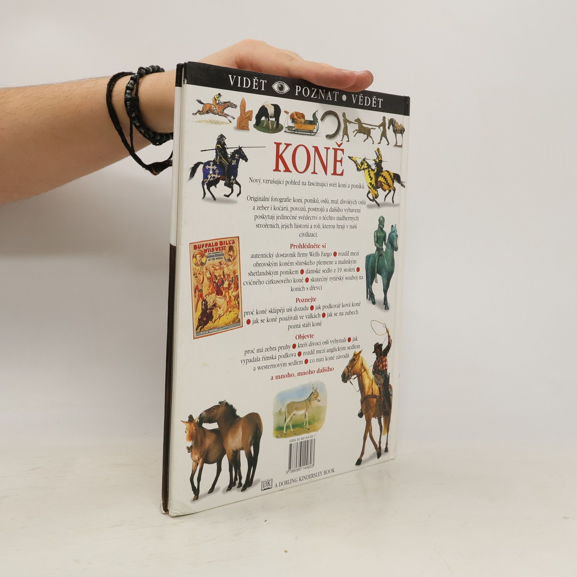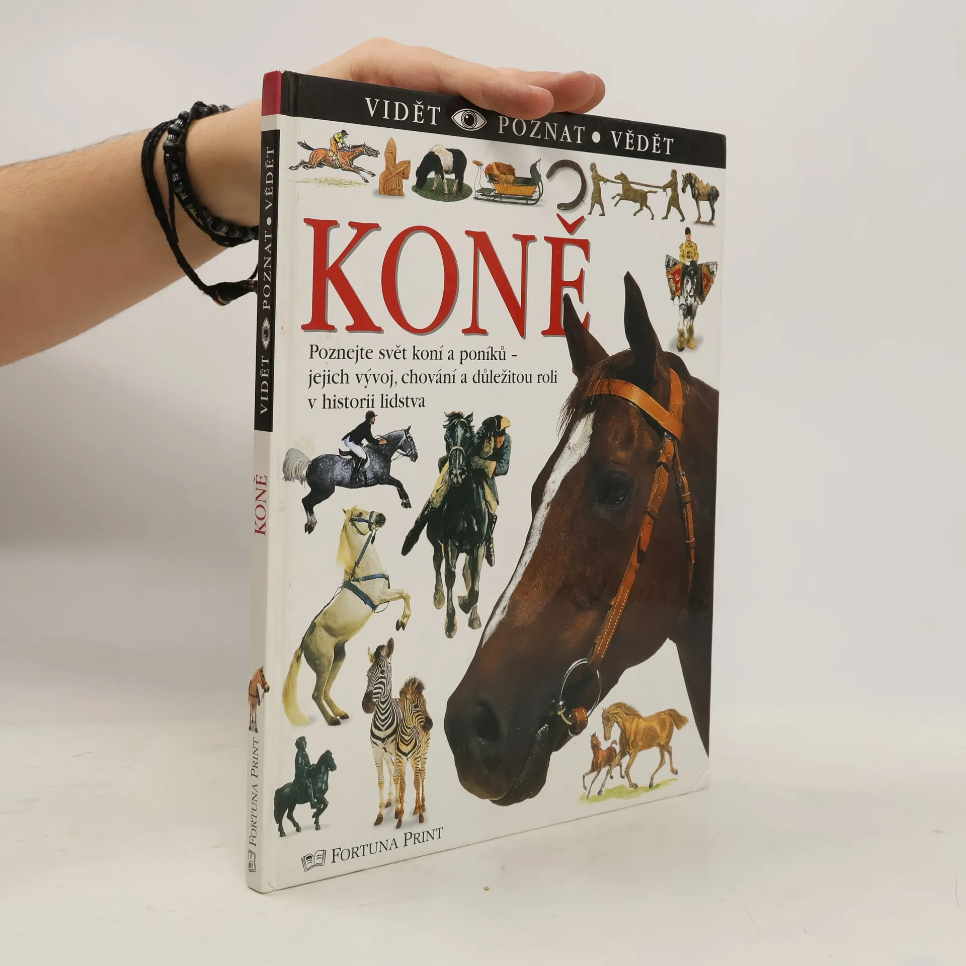 Koně, už dlouhá staletí pomocníci a společníci lidí, poutají pozornost dnešního člověka tím více, čím silněji ho omezuje technická civilizace. Prostřednictvím barevných fotografií se důvěrně obeznámíte s hlavními plemeny koní, s poníky, osly, mulami, divokými osly a zebrami. Zajisté vás zaujmou i kočáry a povozy, postroje a vše, co patří do vzrušujícího světa točícího se kolem koní.