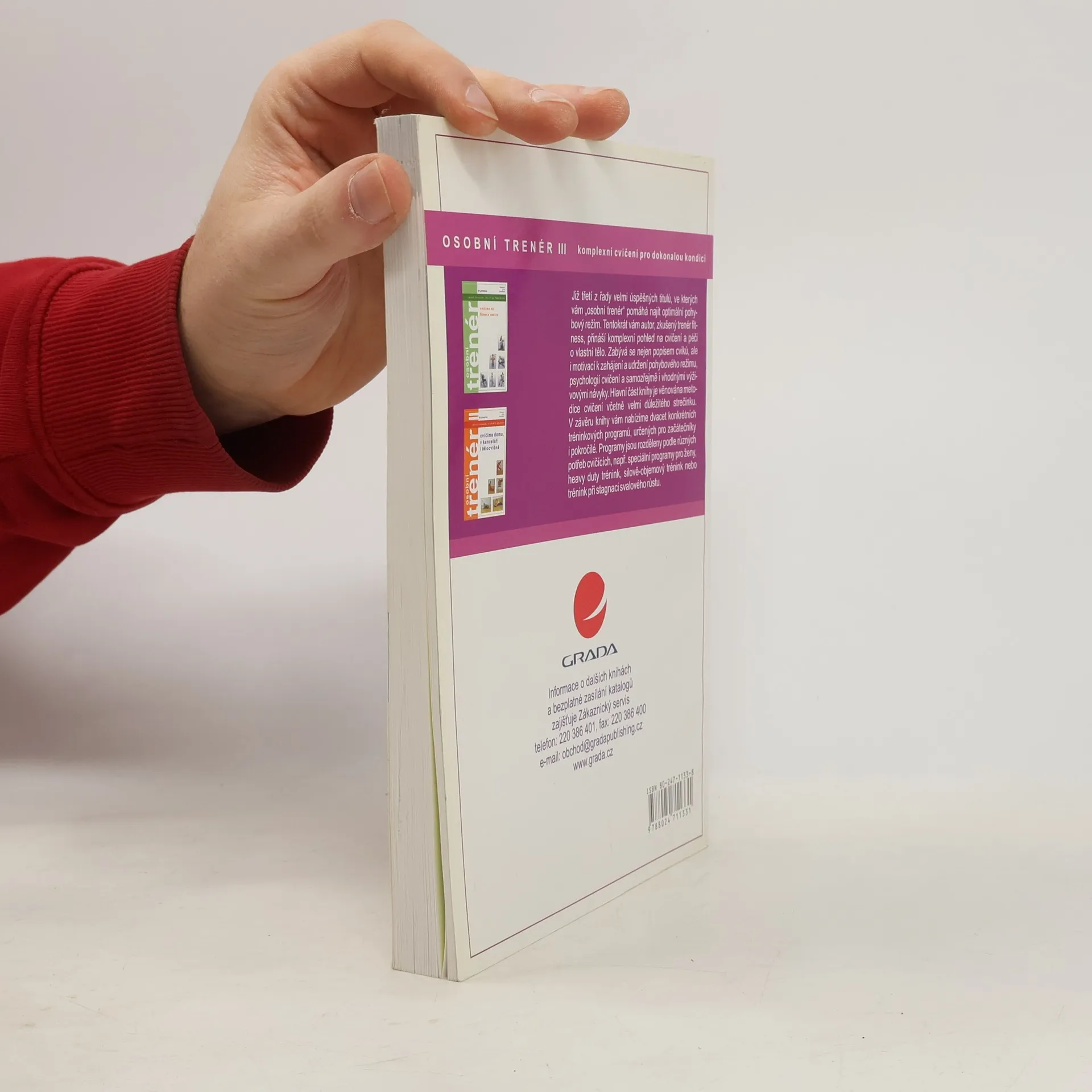 Již třetí z řady velmi úspěšných titulů, ve kterých vám „osobní trenér“ pomáhá najít optimální pohybový režim. Tentokrát vám autor, zkušený trenér fitness, přináší komplexní pohled na cvičení a péči o vlastní tělo. Publikace je určena všem, kteří chtějí samostatně cvičit především v posilovně, ale jistě přinese řadu nápadů i instruktorům a trenérům fitness. Kniha se zabývá nejen popisem cviků, ale i motivací k zahájení a udržení pohybového režimu, psychologií cvičení a samozřejmě i vhodnými výživovými návyky. Hlavní část knihy je věnována metodice cvičení včetně velmi důležitého strečinku. V závěru knihy vám nabízíme dvacet konkrétních tréninkových programů, určených pro začátečníky i pokročilé. Programy jsou rozděleny podle různých potřeb cvičících, např. speciální programy pro ženy, heavy duty trénink, silově-objemový trénink nebo trénink při stagnaci svalového růstu.