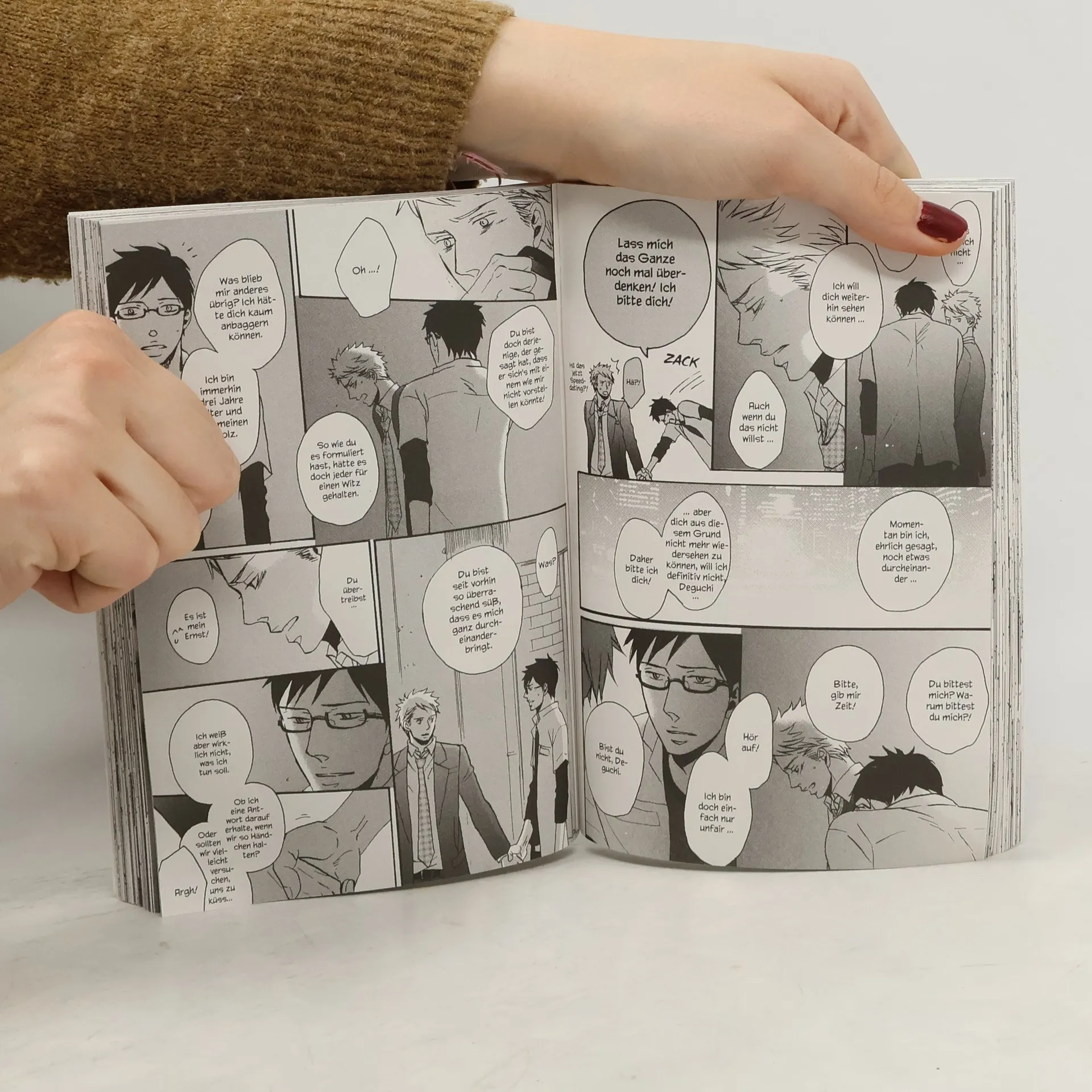 Onoda ist im Berufsleben angekommen und ein umgänglicher, toleranter Mann in einer festen Beziehung. Bei einem Treffen mit Freunden lernt er Deguchi kennen. Der ist homosexuell und Single, hat sich bisher aber nicht geoutet. Obwohl die beiden so unterschiedlich zu sein scheinen, verstehen sie sich ausgezeichnet. Deguchi, für den es eigentlich ein No-Go ist, dass ein Homosexueller etwas mit einem Hetero-Mann anfängt, wird zunehmend gereizter, da er sich seiner eigenen Gefühle für Onoda bewusstwird. Doch dann konfrontiert ihn dieser unerwartet mit einem Geständnis … Das Spin-off zu Kou Yonedas Boys-Love-Debüt "No touching at all"!