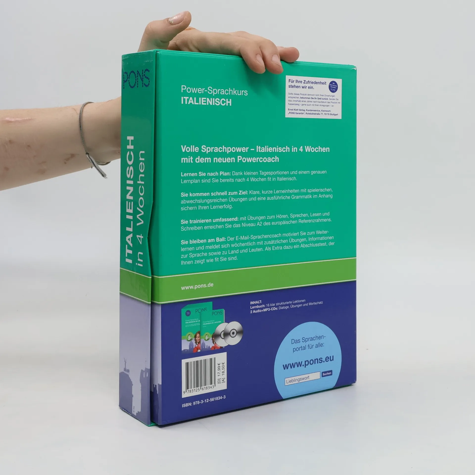 Volle Sprachpower - Italienisch in 4 Wochen mit dem neuen Sprachencoach - Lernen Sie nach Plan: Dank kleinen Tagesportionen und einem genauen Lernplan sind Sie bereits nach 4 Wochen fit in Italienisch. - Sie kommen schnell zum Ziel: Klare, kurze Lerneinheiten mit spielerischen, abwechslungsreichen Übungen und eine ausführliche Grammatik im Anhang sichern Ihren Lernerfolg. - Sie trainieren umfassend: mit Übungen zum Hören, Sprechen, Lesen und Schreiben erreichen Sie das Niveau A2 des europäischen Referenzrahmens. - Sie bleiben am Ball: Der E-Mail-Sprachencoach motiviert Sie zum Weiterlernen und meldet sich wöchentlich mit zusätzlichen Übungen, Informationen zur Sprache sowie zu Land und Leuten. Als Extra dazu ein Abschlusstest, der Ihnen zeigt wie fit Sie sind. Entdecken Sie den Power-Sprachkurs!